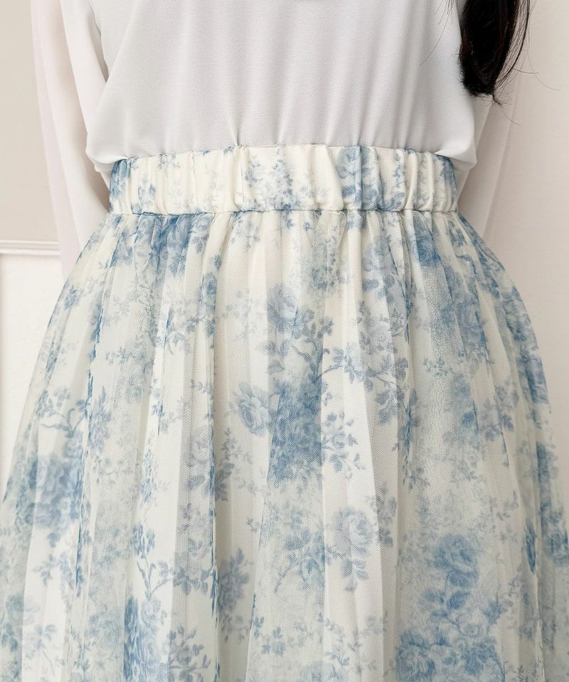 華やかなローズ柄が目を惹くチュールスカート。