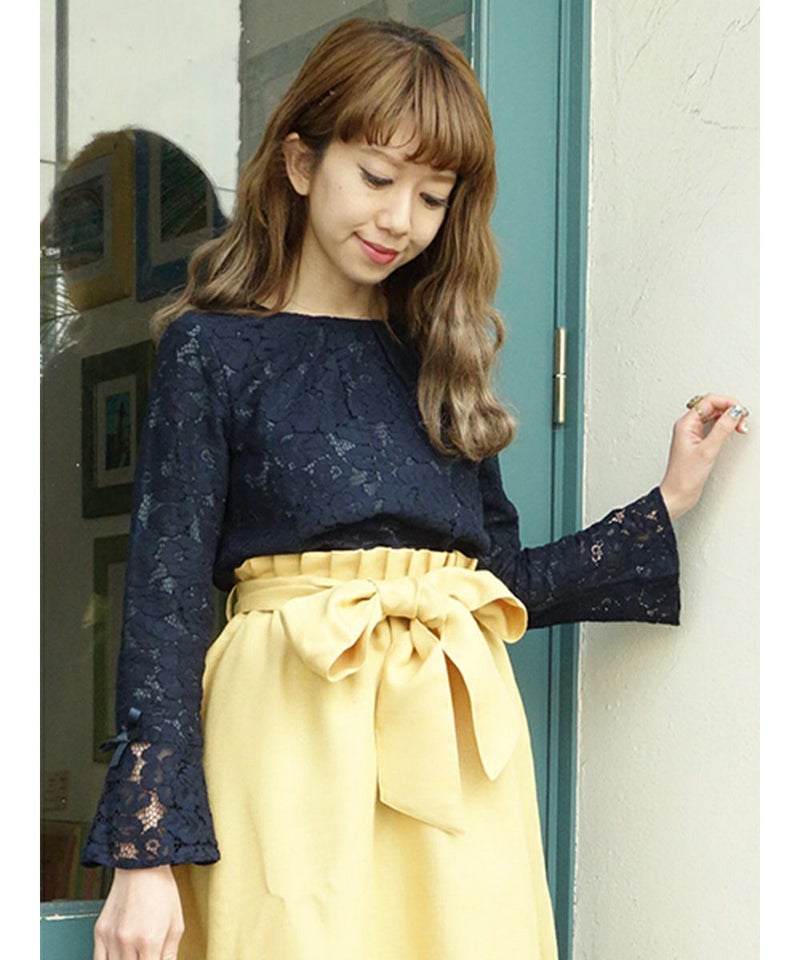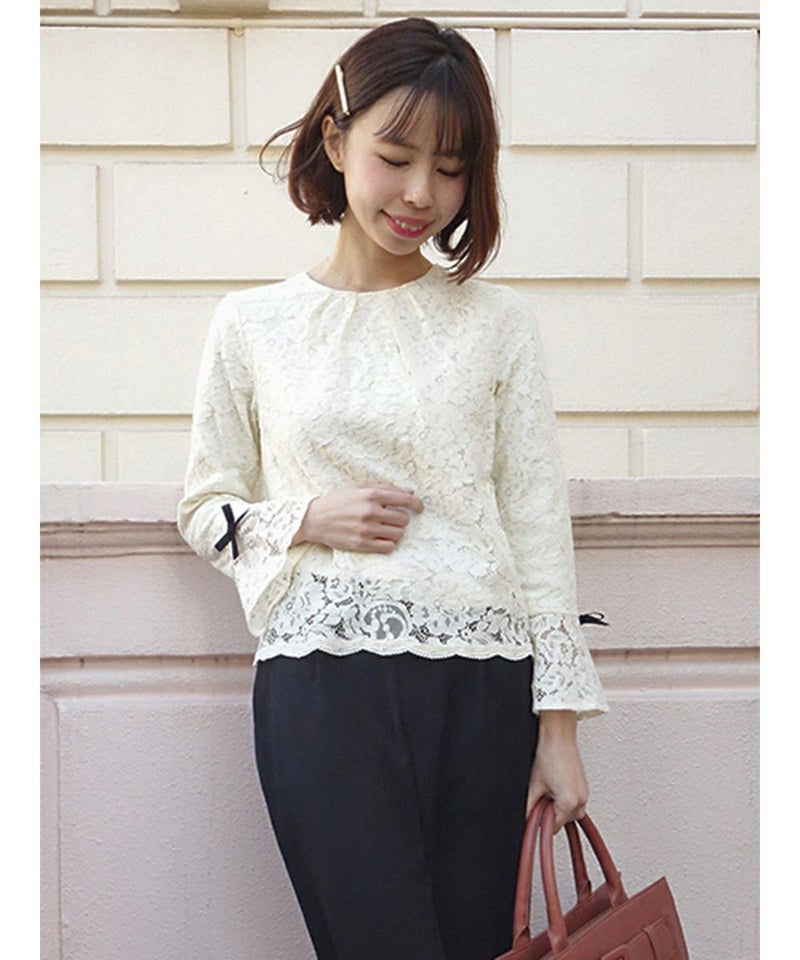 総レースノーカラープルオーバーブラウス/an another angelus [21BF02j002]