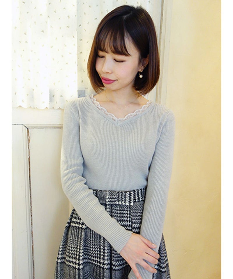 レース使いハートカットニットプルオーバー/an3 [21BJ03j001]