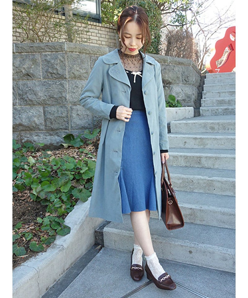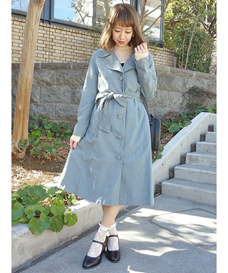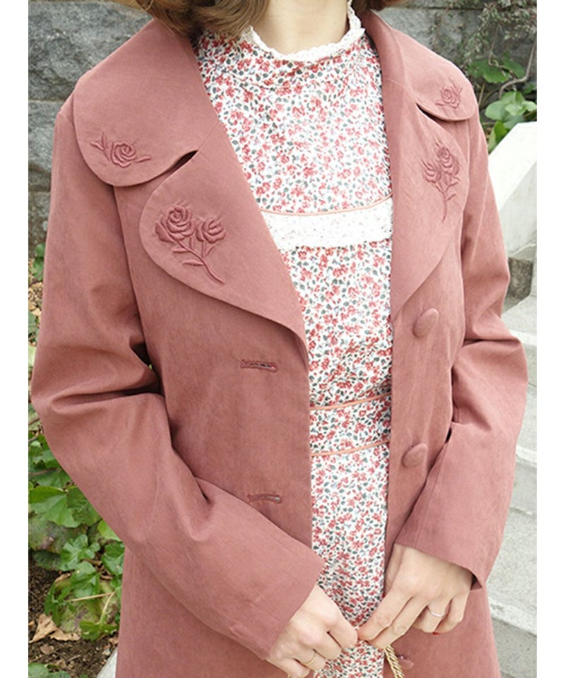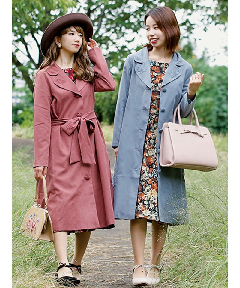 ローズ刺繍衿カラーコート/an another angelus [23BD03j004]