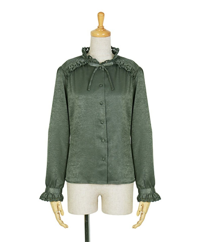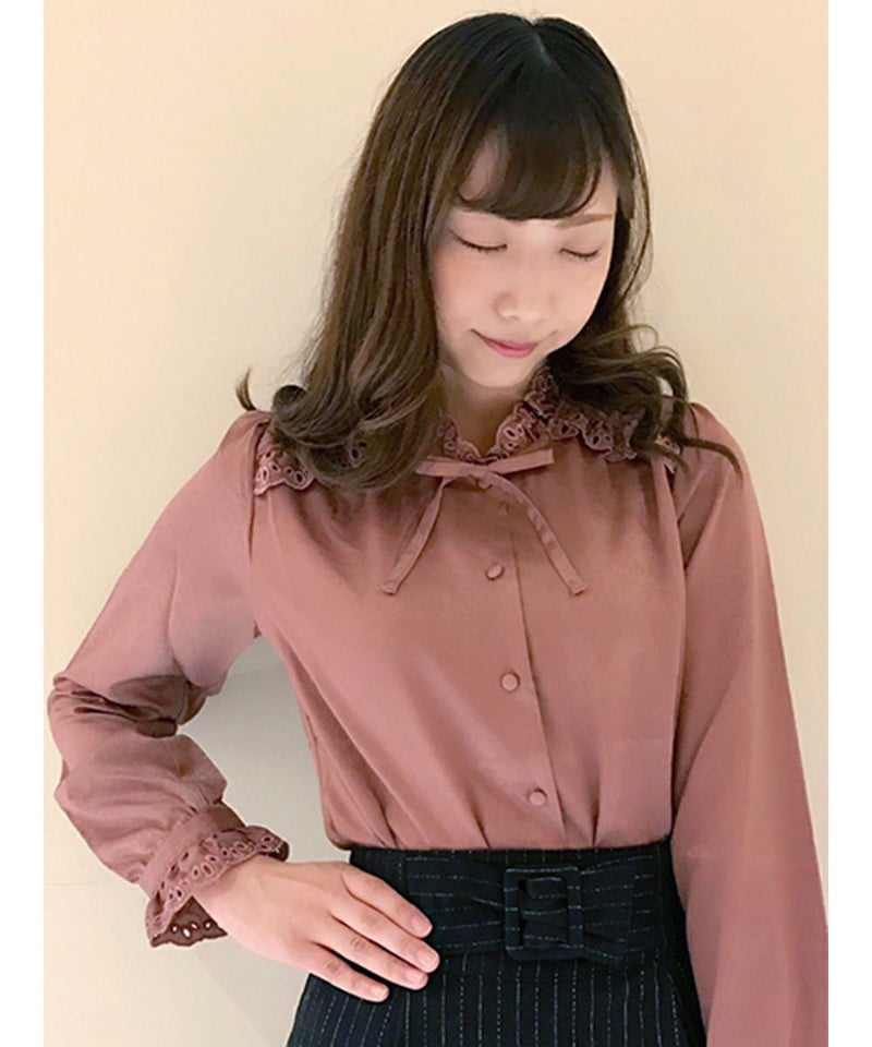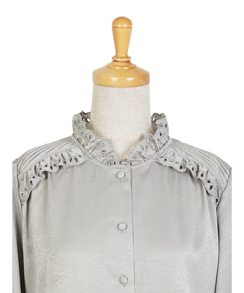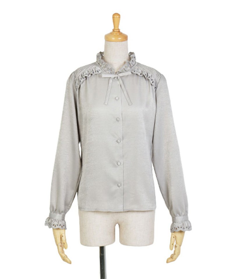 カットワークフリルサテンブラウス/an another angelus [24BF02j022]