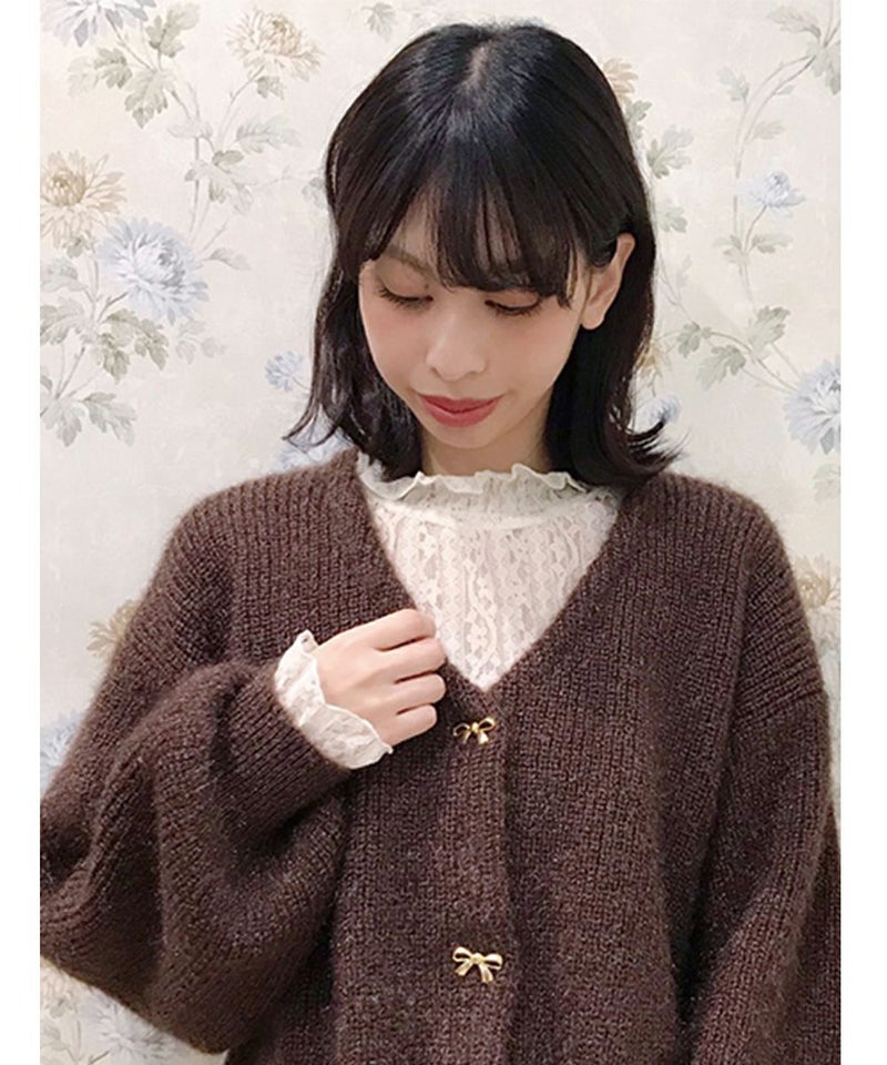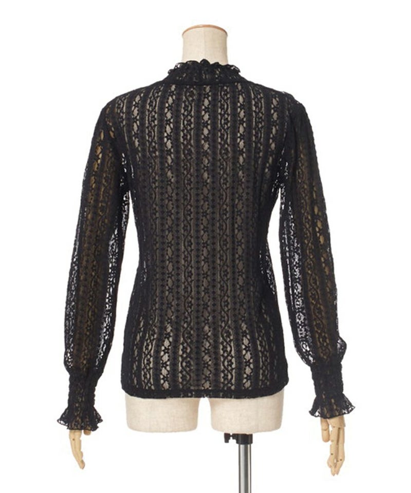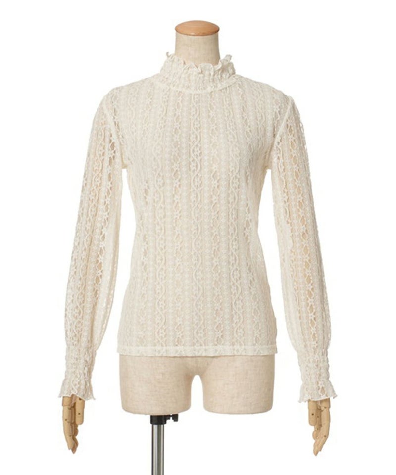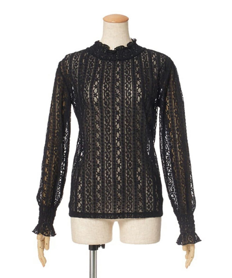 ストライプレースハイネックトップス/F&A[25CI01j001]