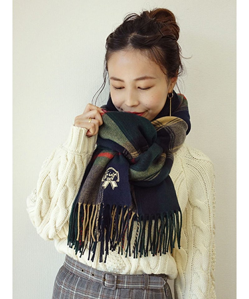 刺繍入りチェックストール/F i.n.t[27AB09a009]