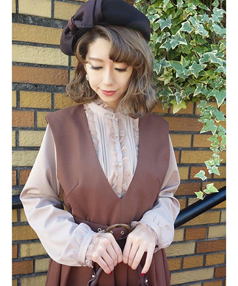 フリルレース使いスタンドカラーブラウス/F i.n.t