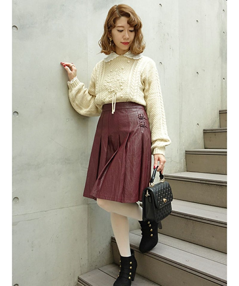 フェイクレザーキルトプリーツスカート/F i.n.t