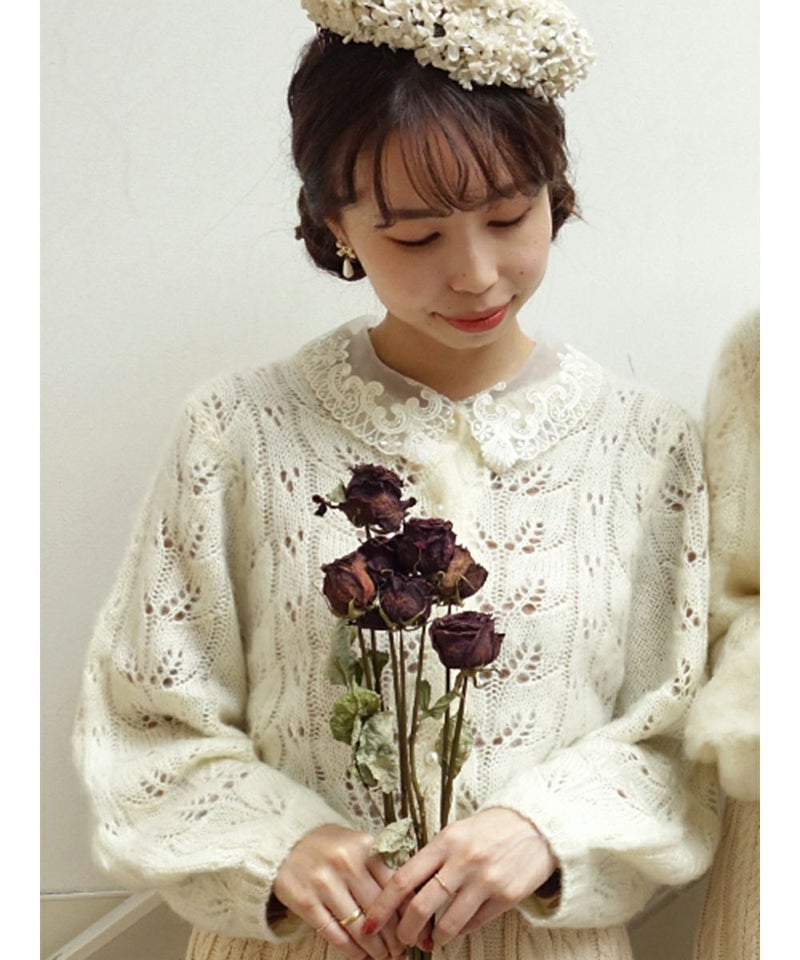 オーガンジーレース衿ブラウス/an another angelus [27BF02j003]
