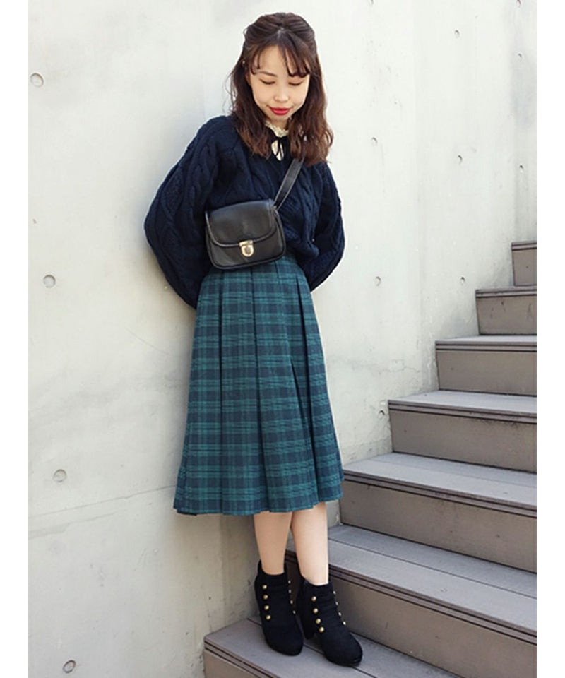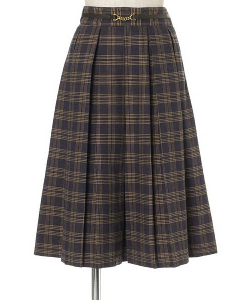 チェーンビット使い起毛チェックプリーツスカート/F&A