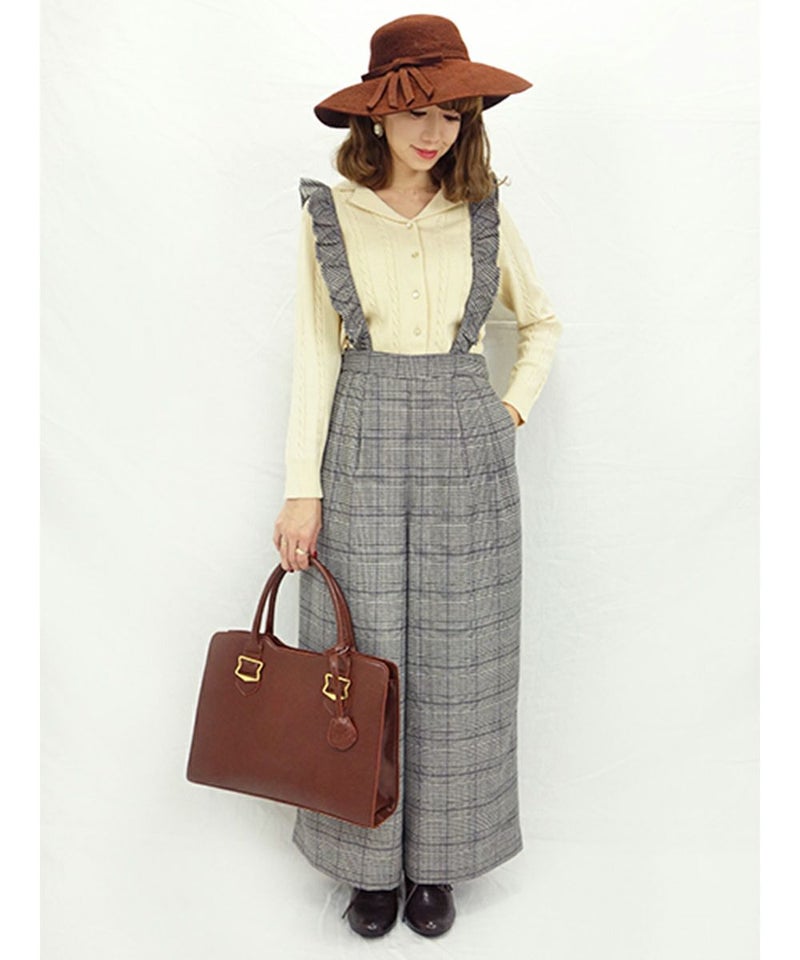 フリルサス付きチェックワイドパンツ/F&A [27CH04q003]