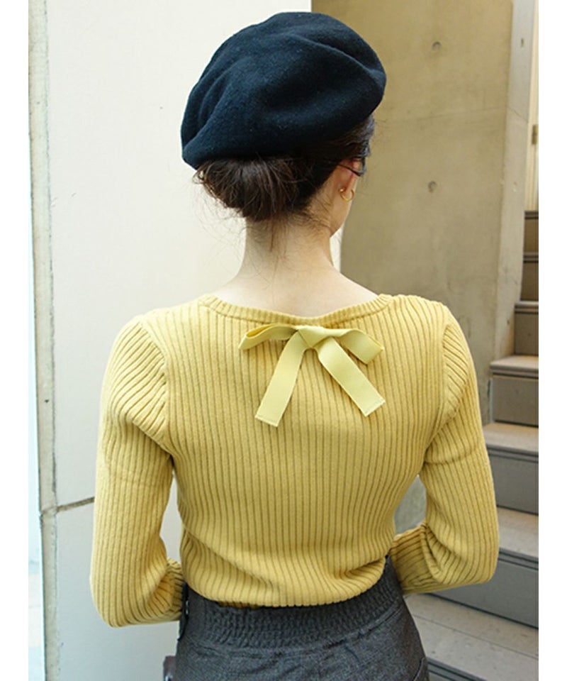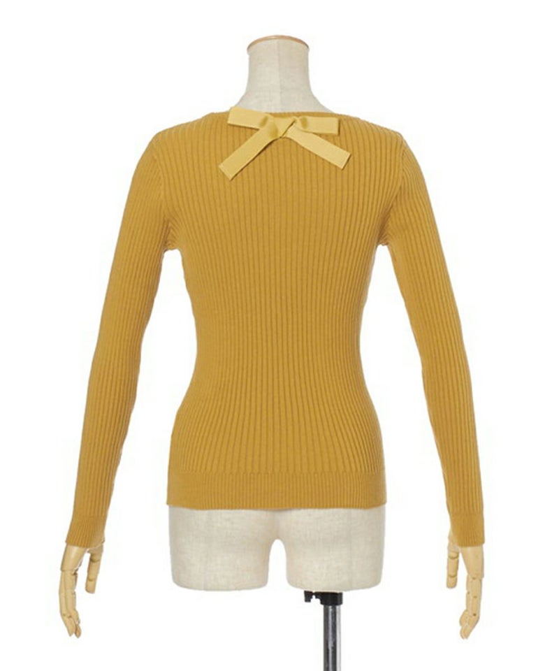バックリボンUネックリブニットプルオーバー/F&A