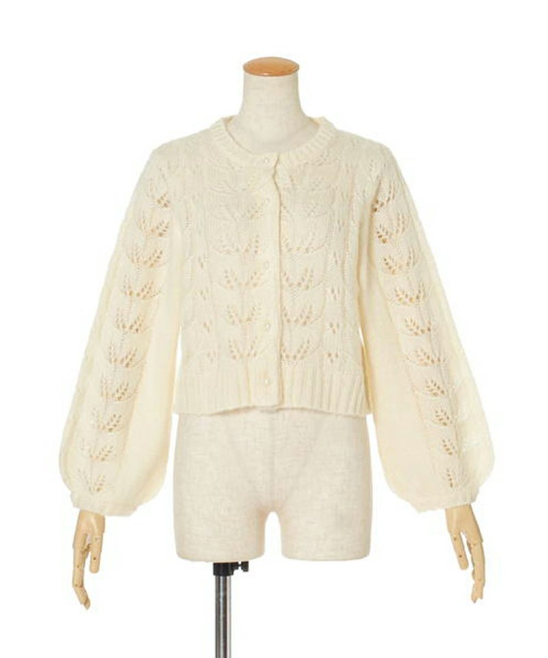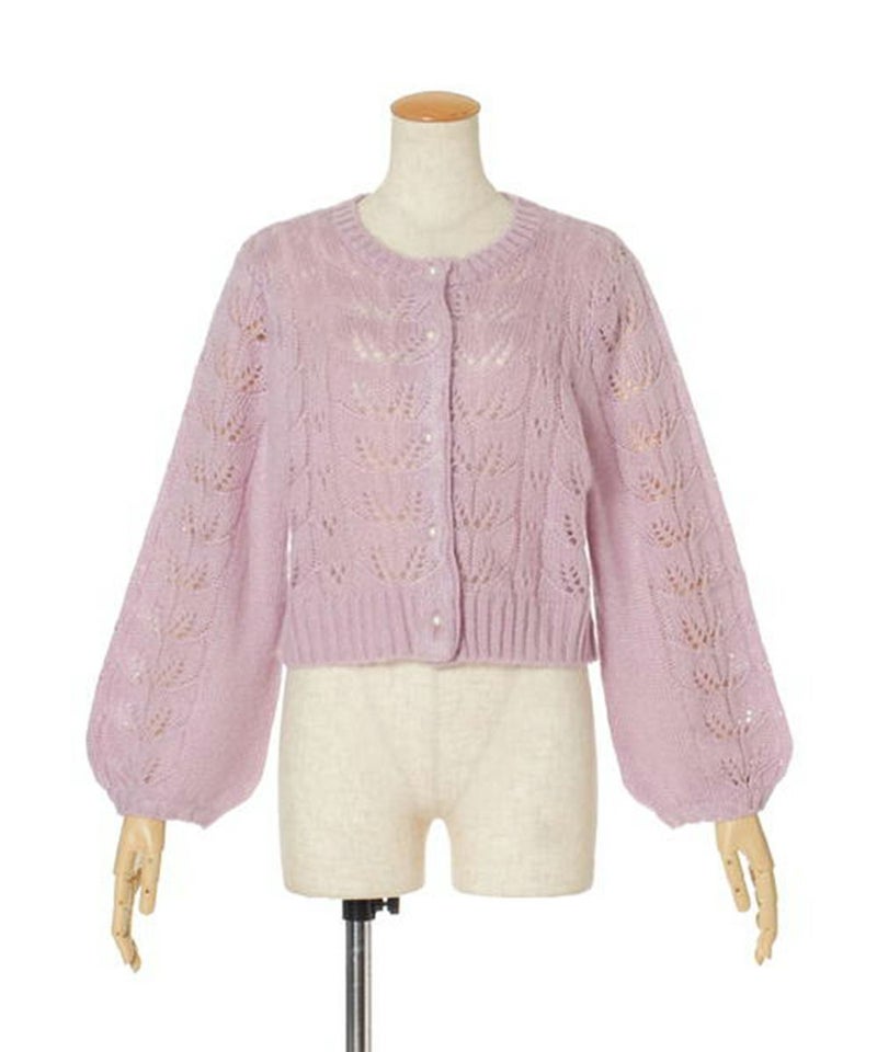 モヘアタッチリーフ透かしニットカーディガン/F&A [27CJ04j012]