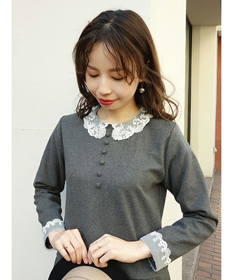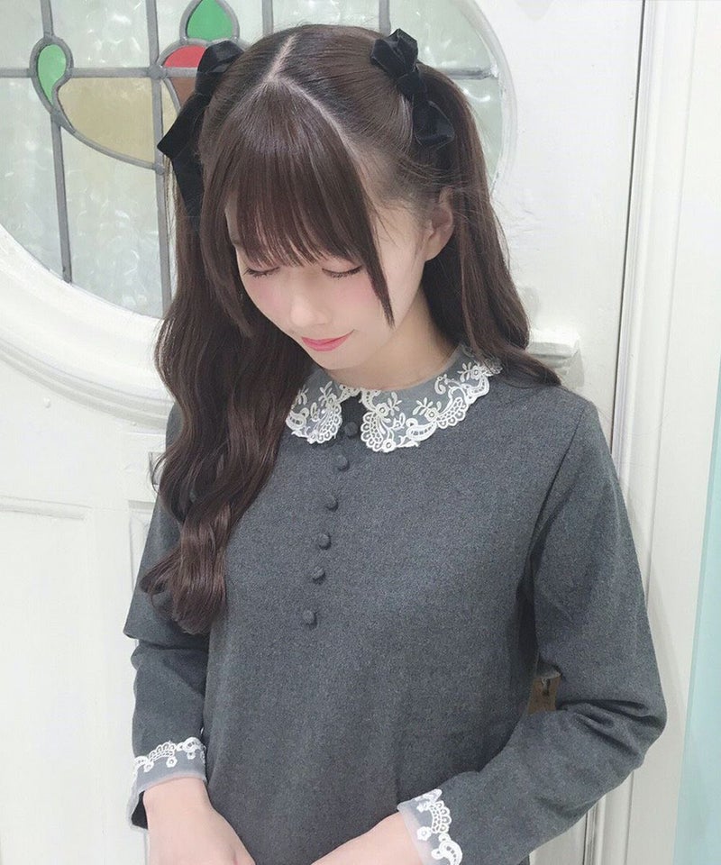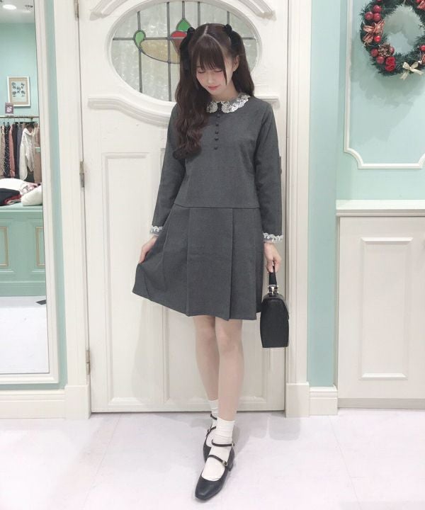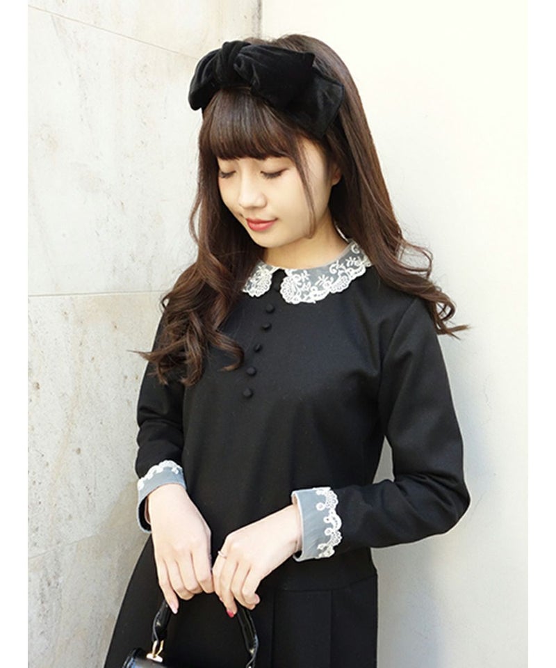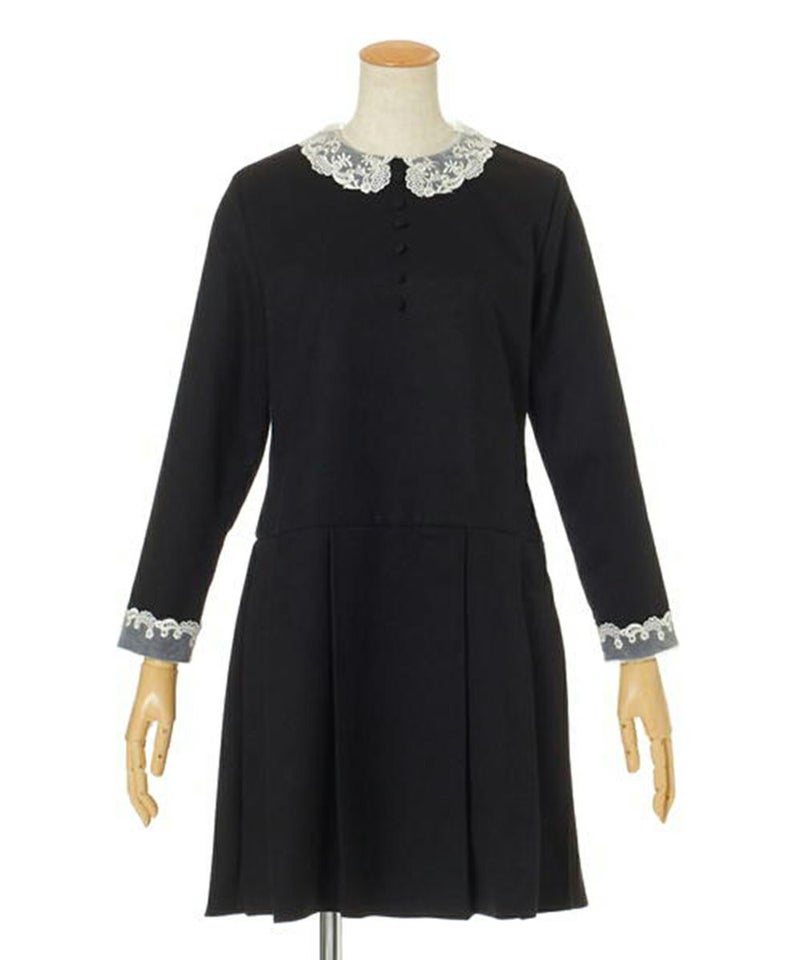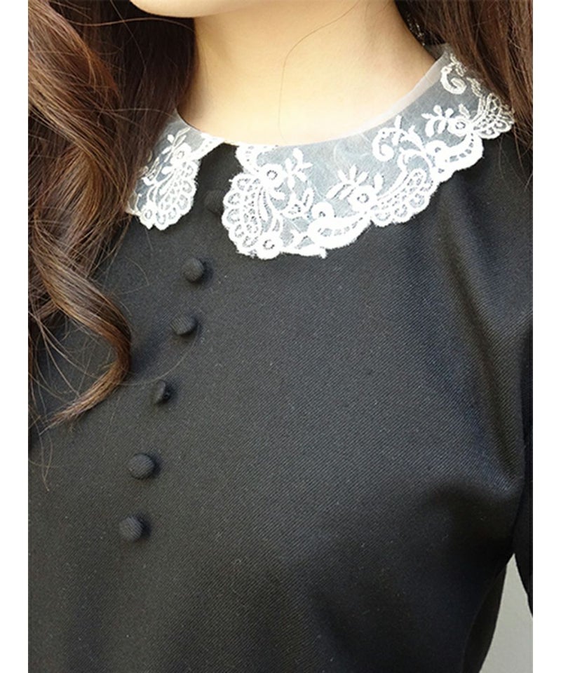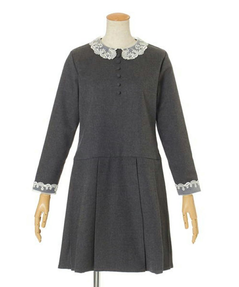 オーガンジーのレース衿がクラシカルなワンピース。