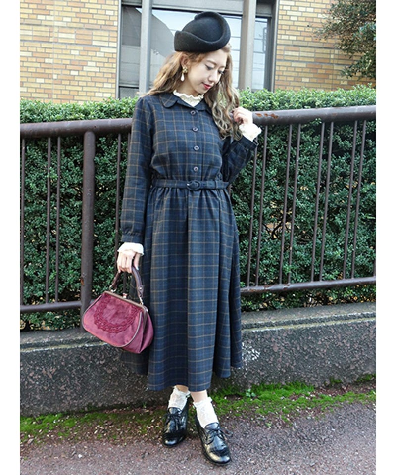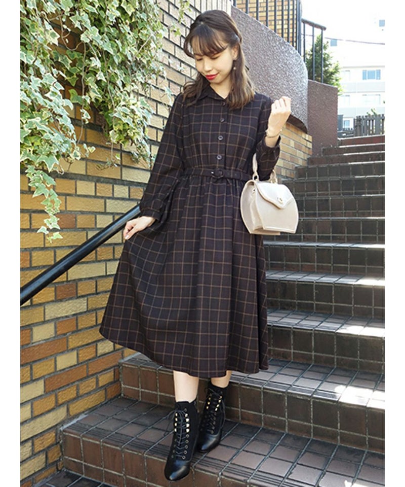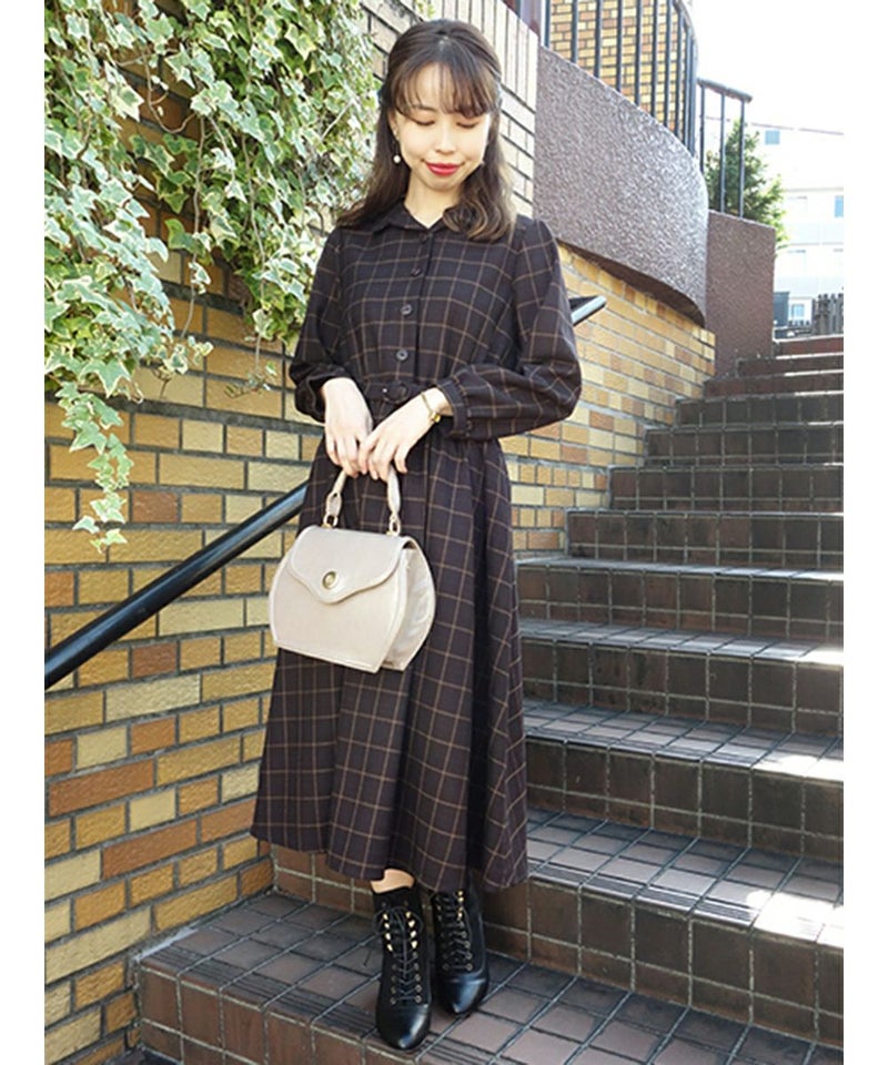 開衿起毛チェックワンピース/an another angelus[28BE03j013]