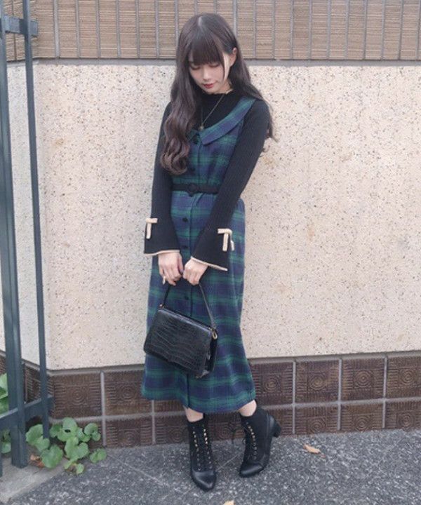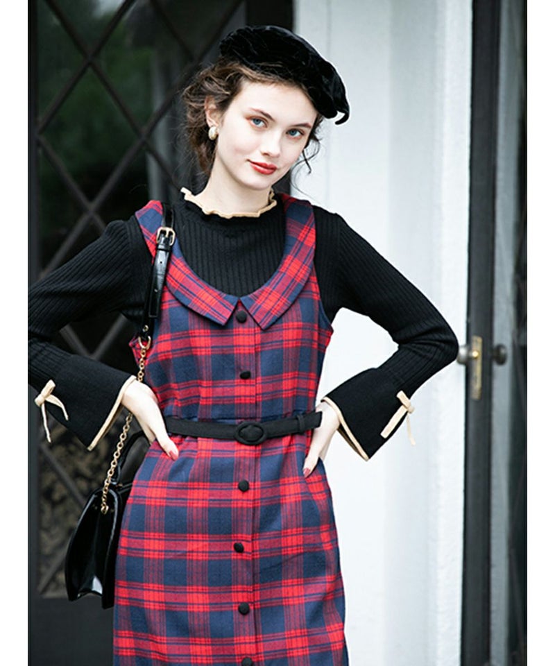 衿付チェックストレートジャンスカ/an another angelus [28BE04f012]