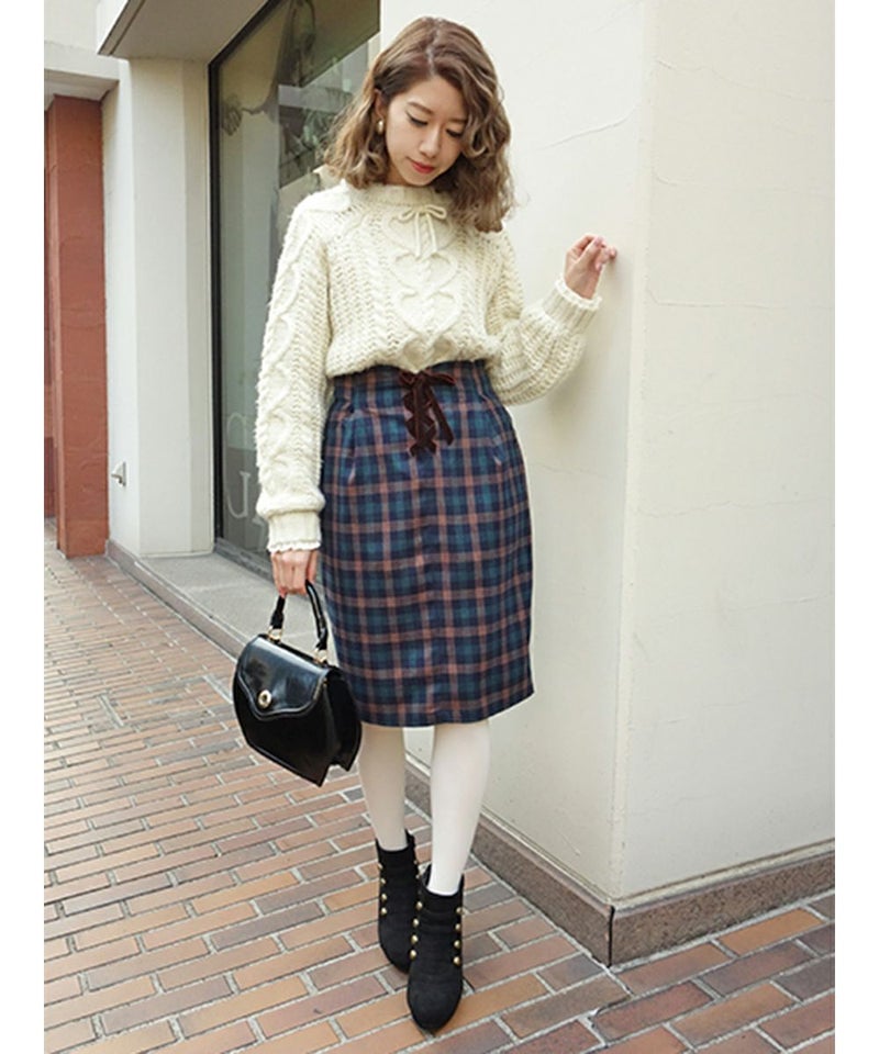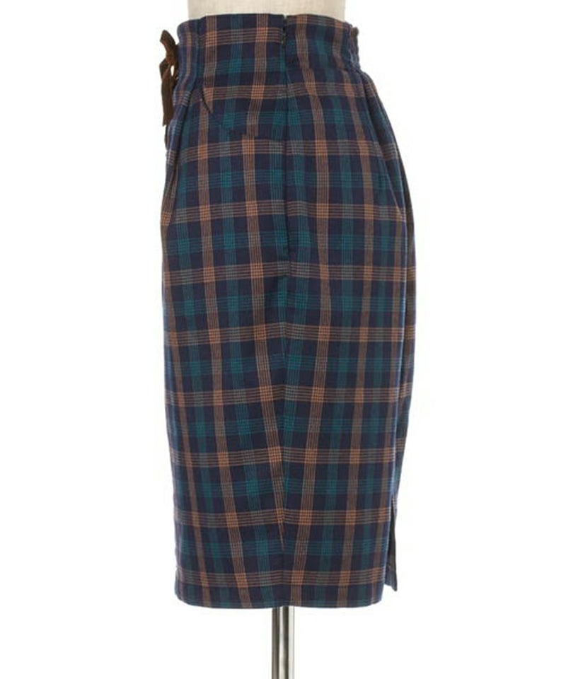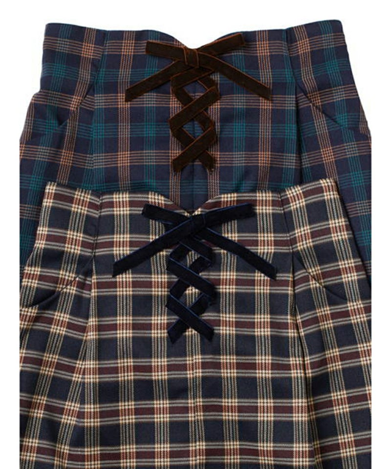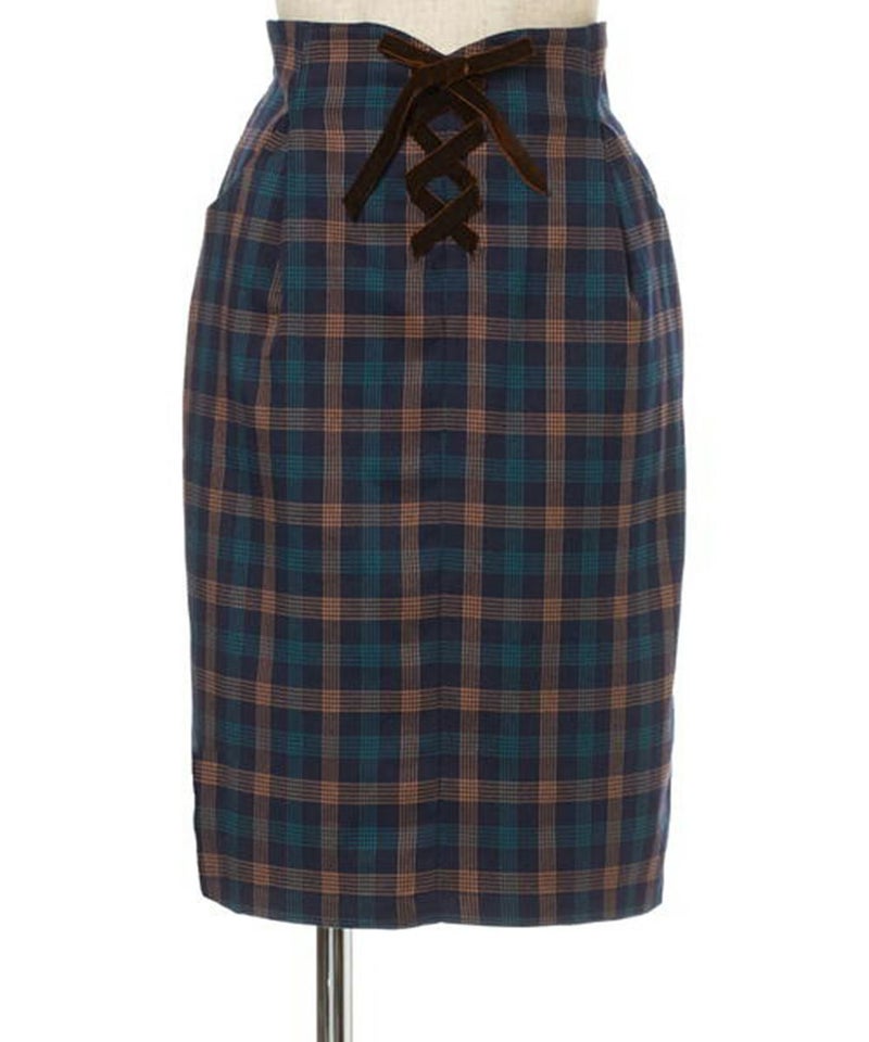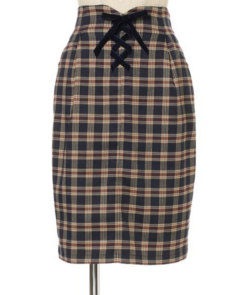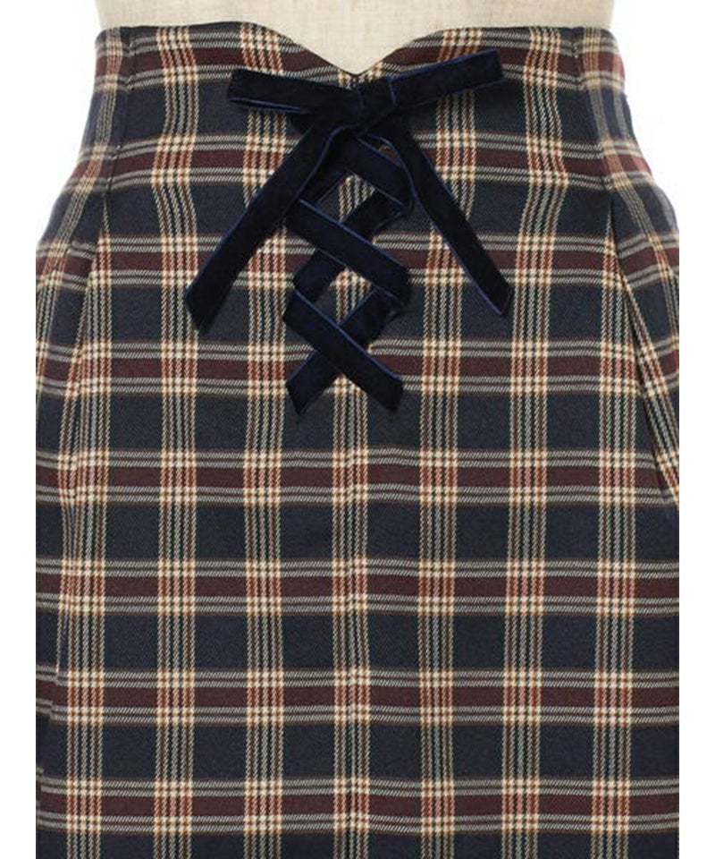 ベロアリボンレースアップチェックタイトスカート/F&A [28CG01n013]