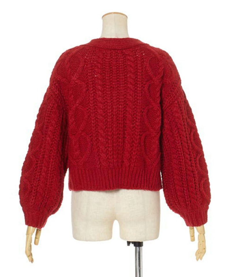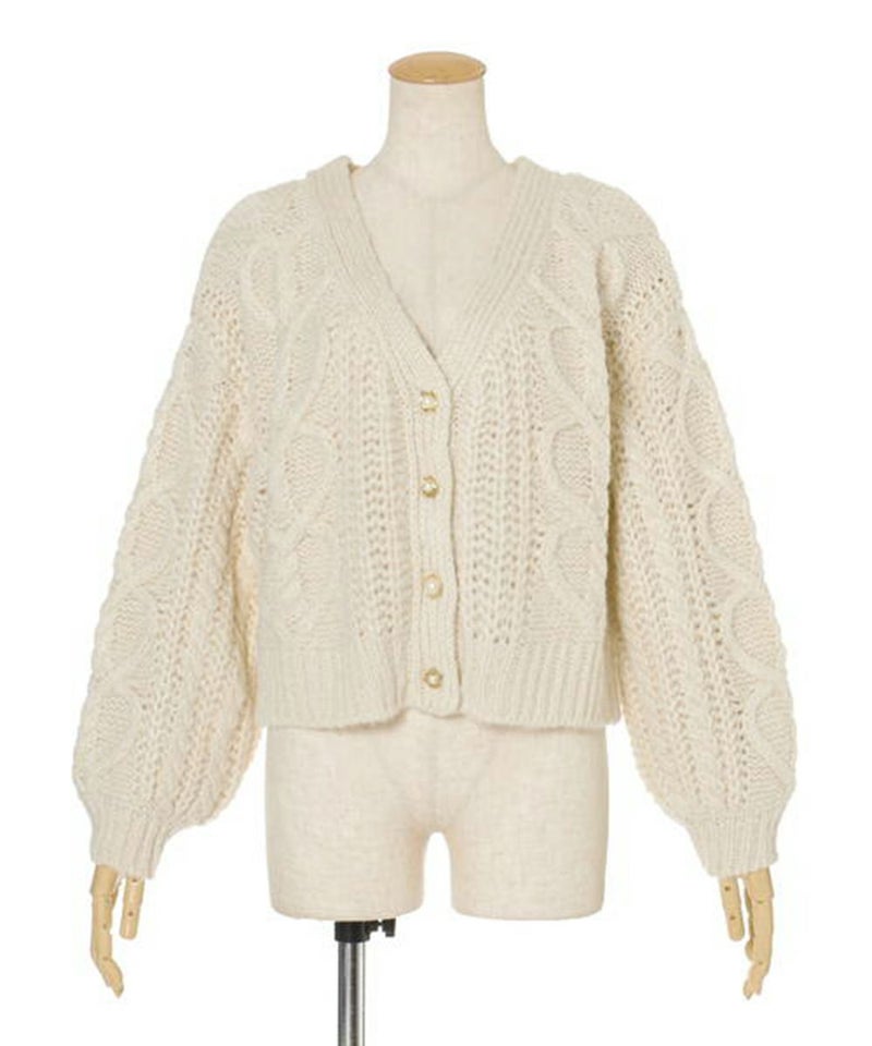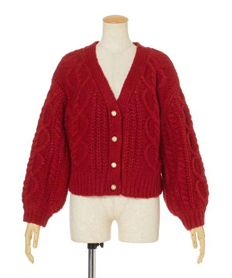ハートケーブルローゲージニットカーディガン/F&A [28CJ04j024]