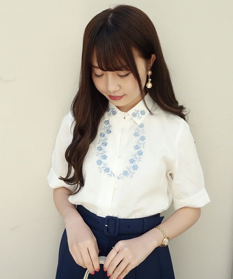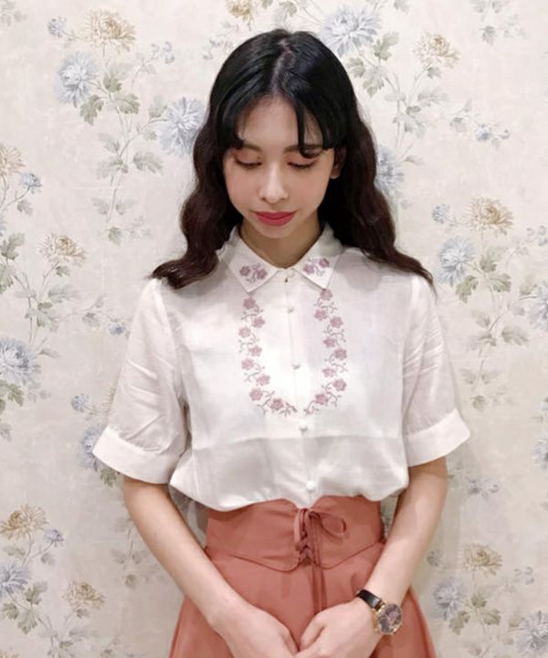 小花刺繍5分袖シャツ/F i.n.t[29AF01h012]