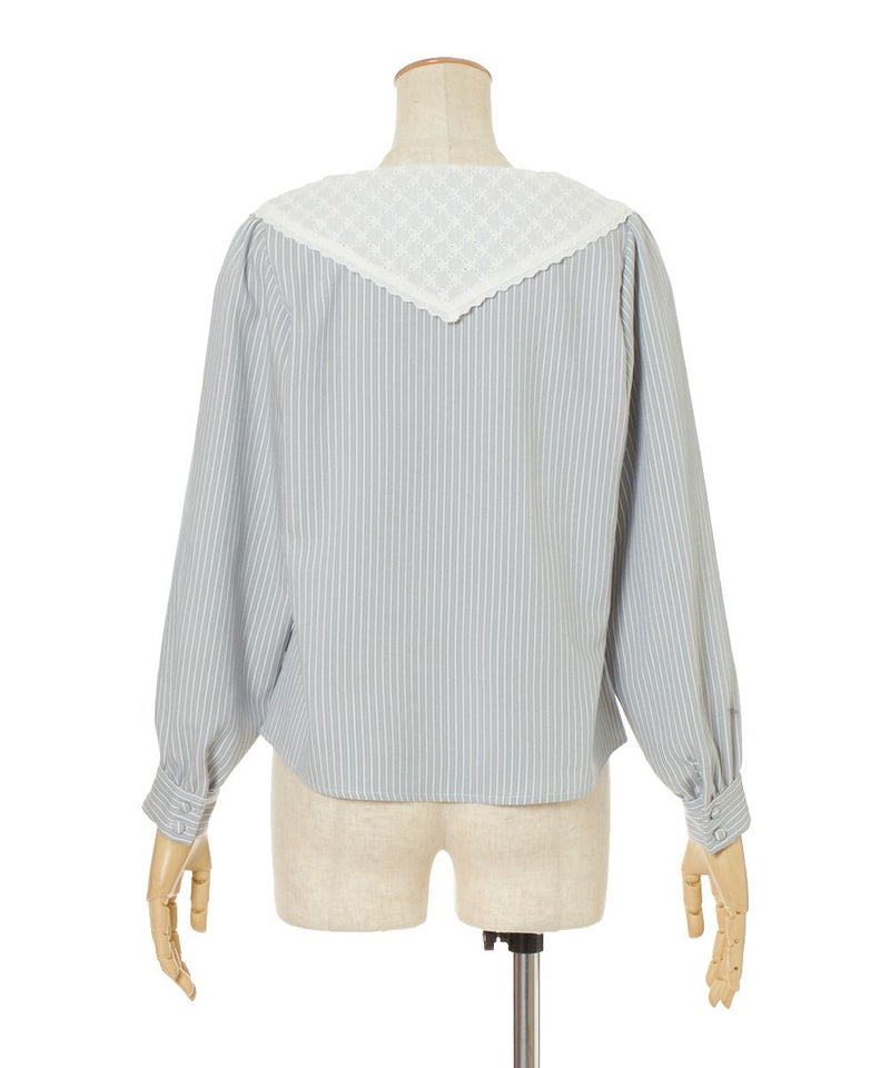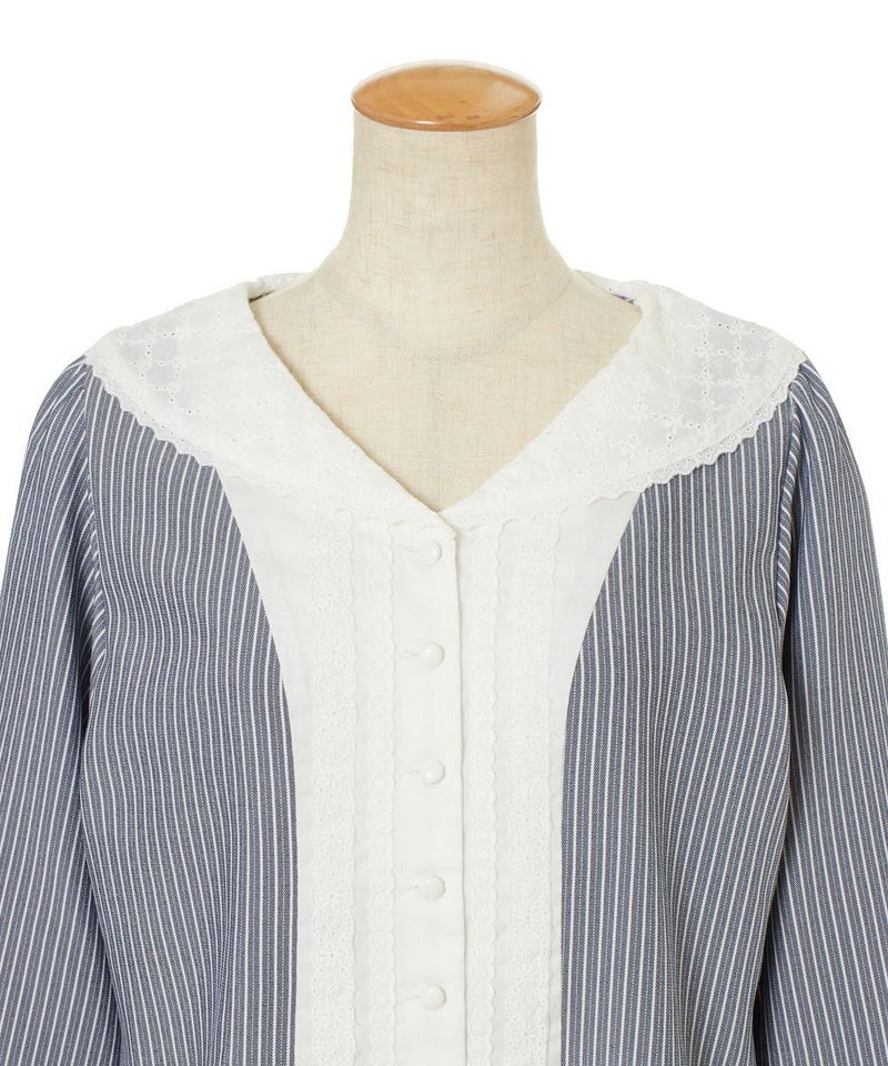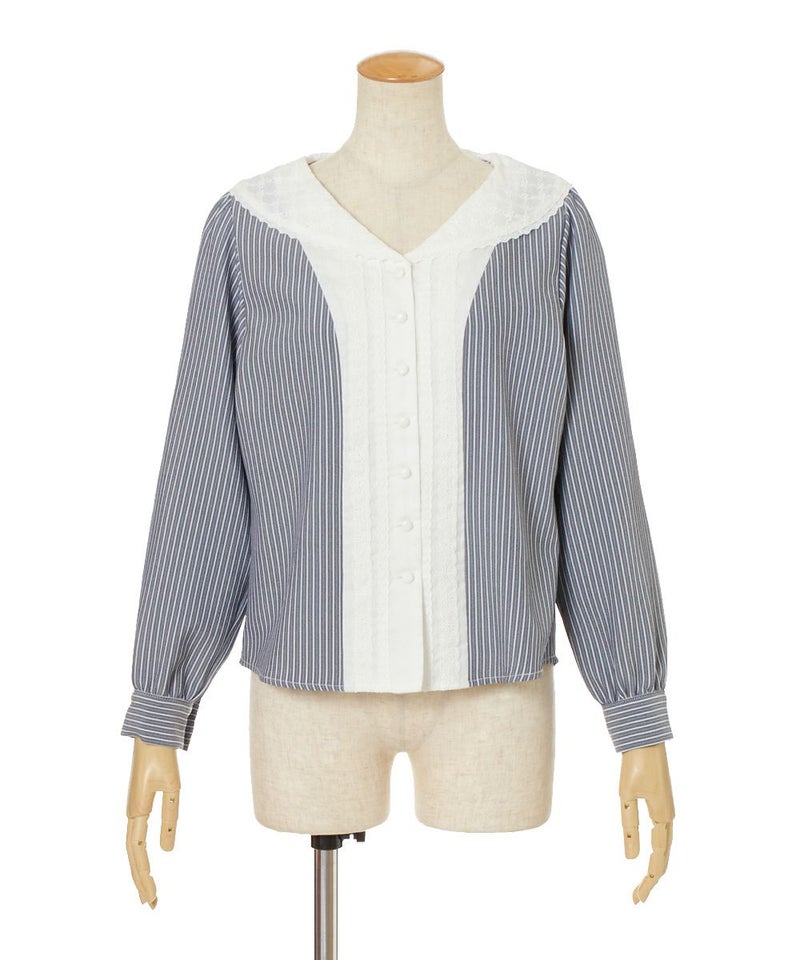 コットンレース使いストライプブラウス/F i.n.t [29AF02j004]