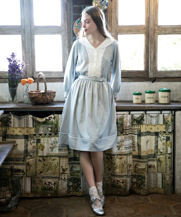 コットンレース使いストライプスカート/F i.n.t [29AG02p004]