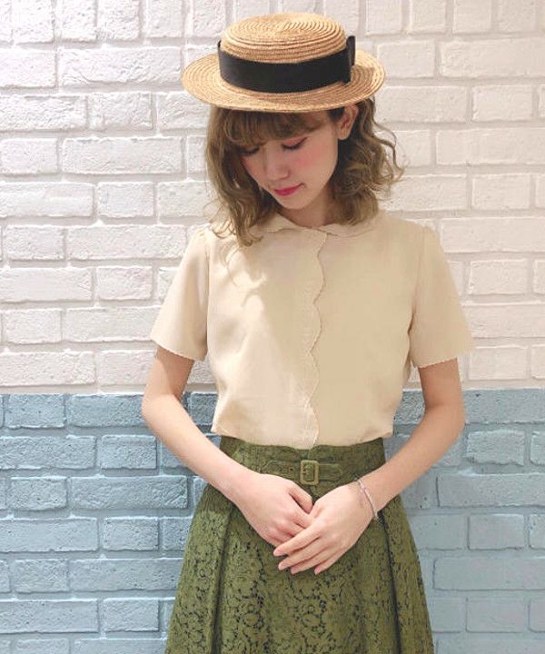 リーフ刺繍ブラウス/an another angelus[29BF02g008]