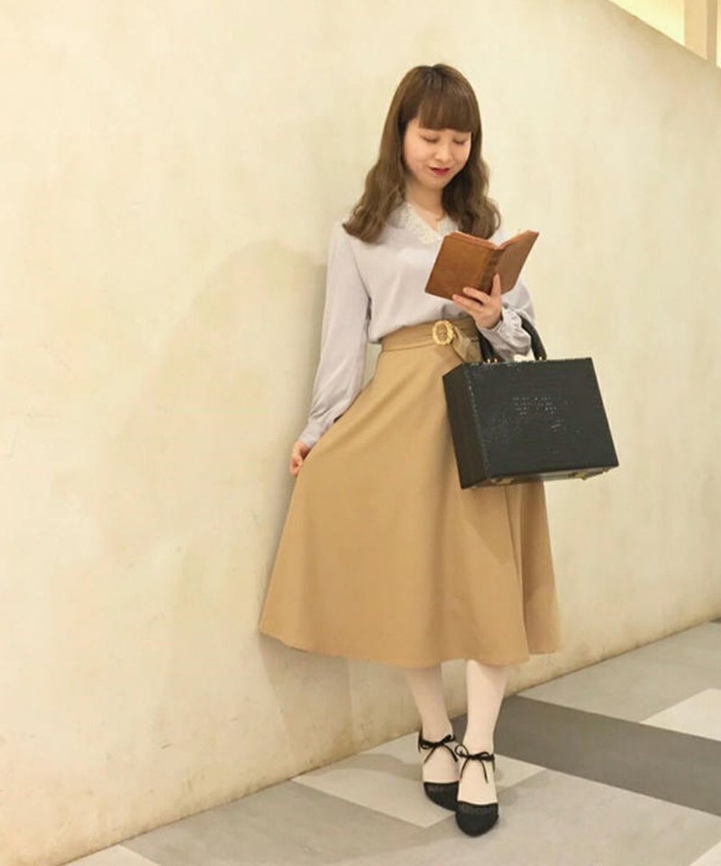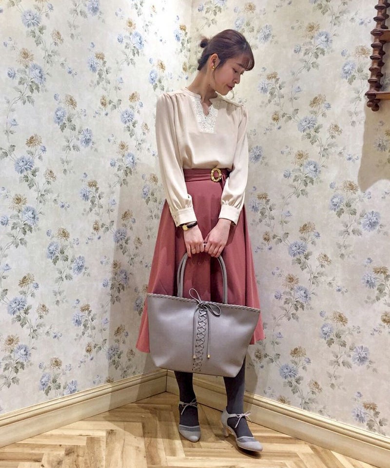光沢感のあるとろみ素材が、落ち着いた印象に見せてくれるポイント。