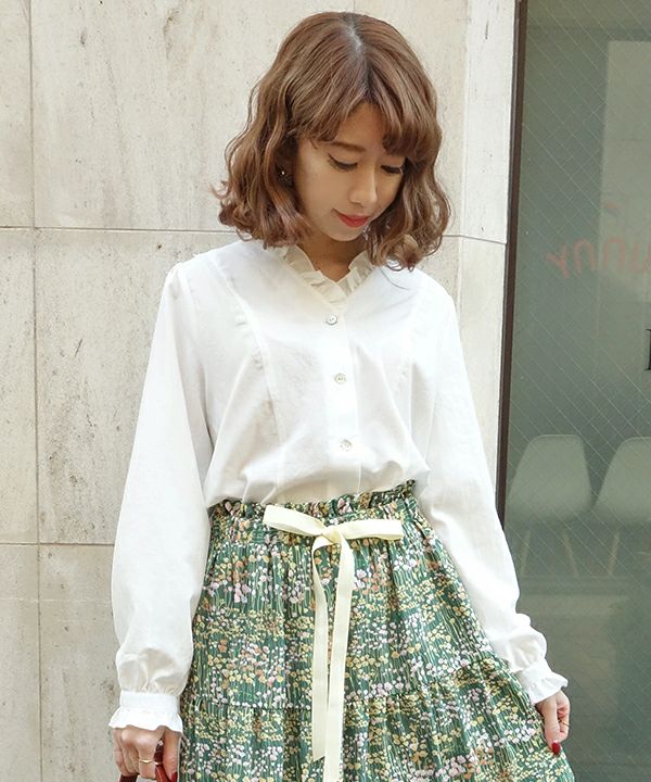 Vネックフリル衿ブラウス/an another angelus [29BF02j007]