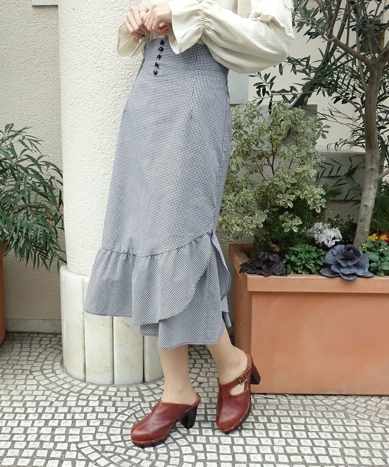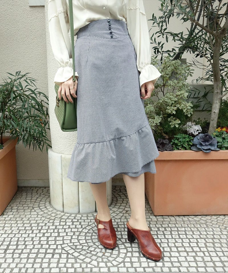 裾ティアードギンガムチェックスカート/an another angelus [29BG01p003]