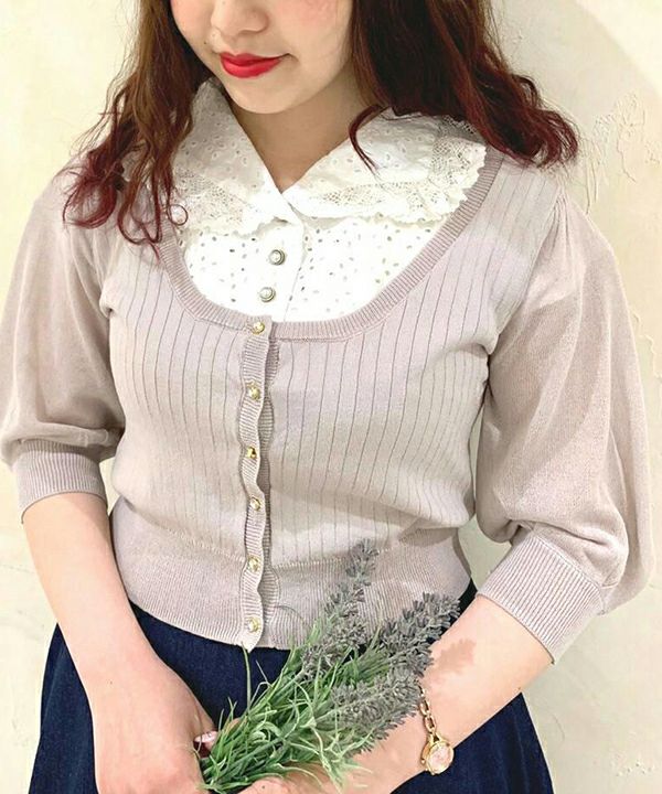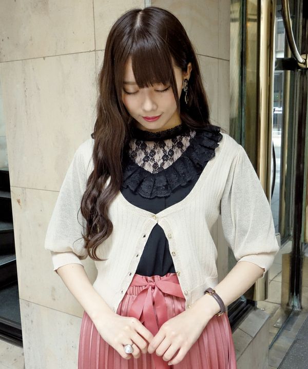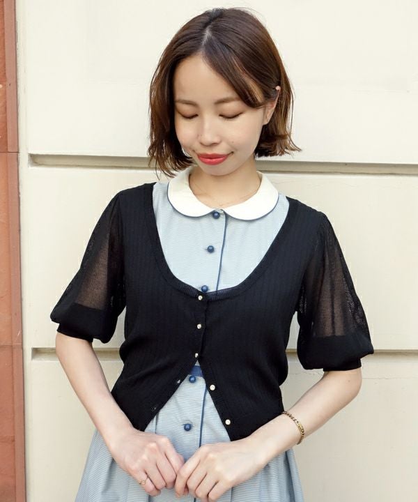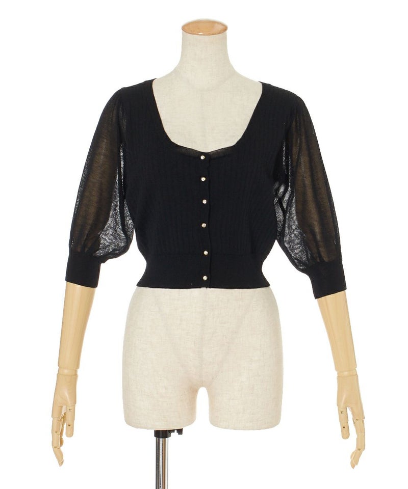 シースルースリーブUネックニットカーディガン/an another angelus[29BJ04h005]