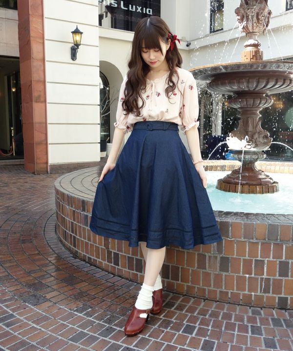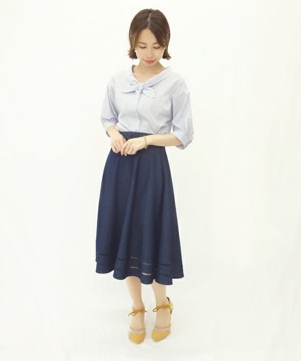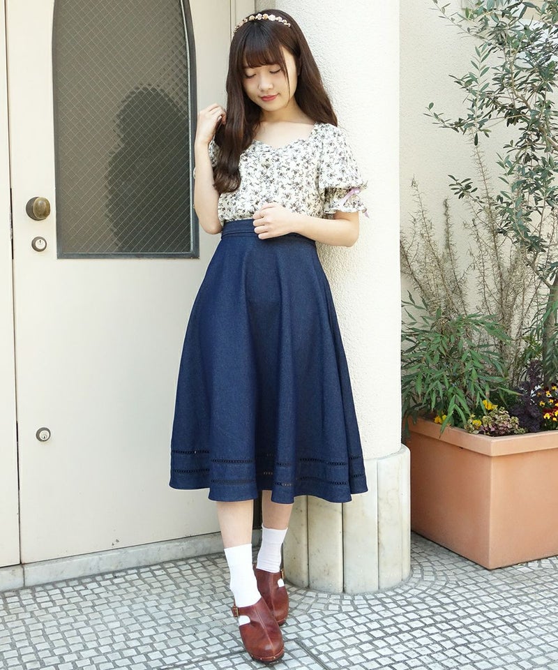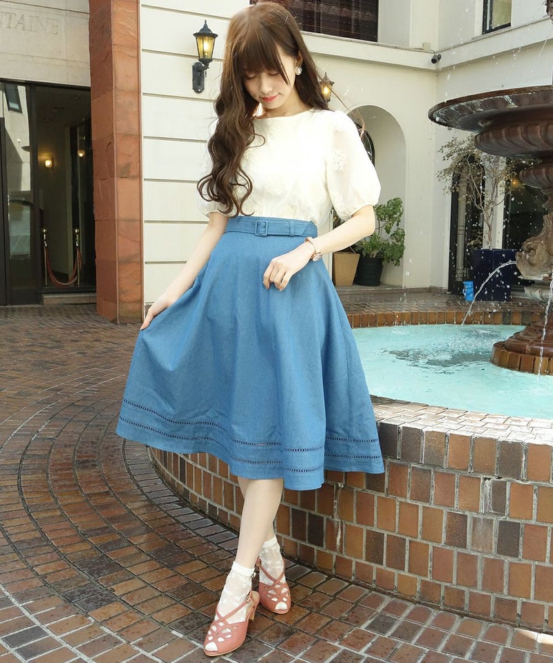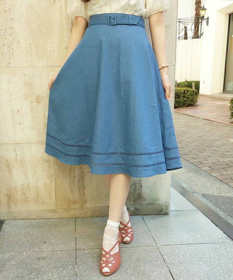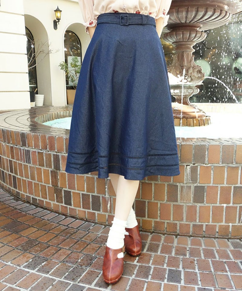 はしごレース使いデニムフレアースカート/F&A[29CG06n005]