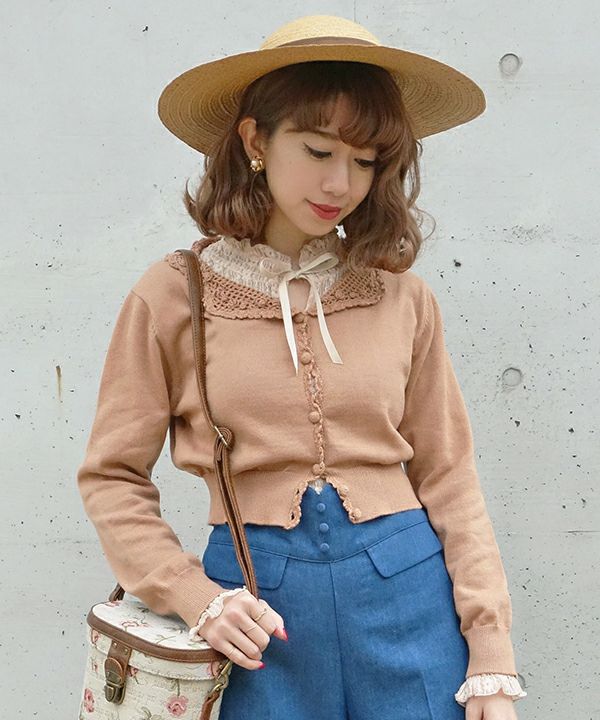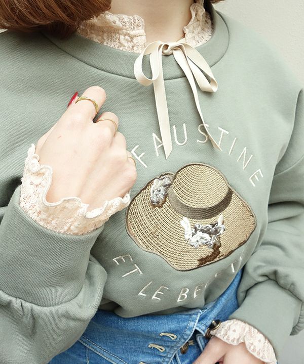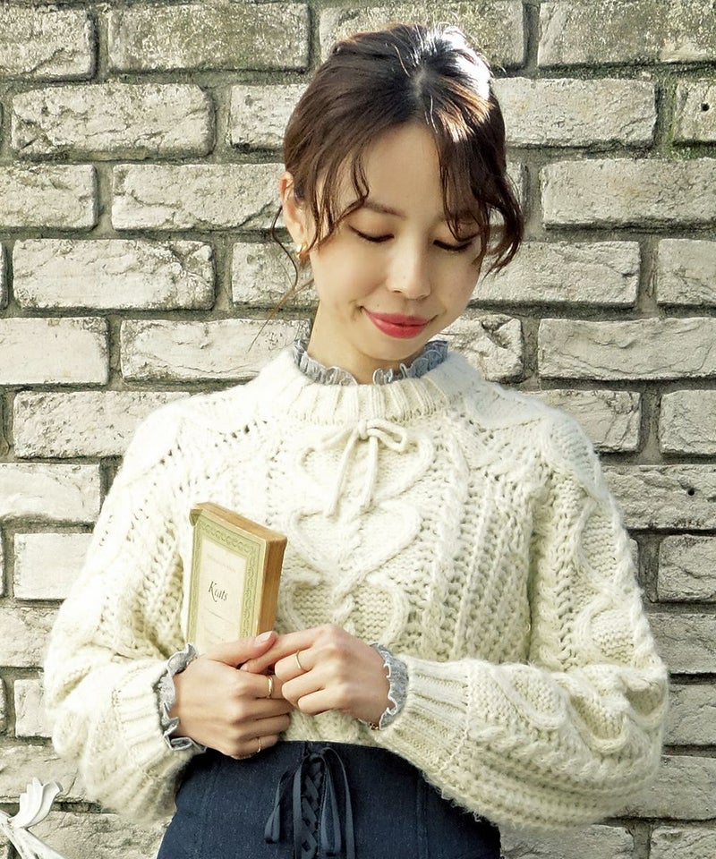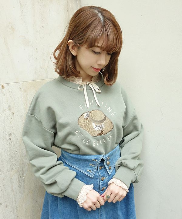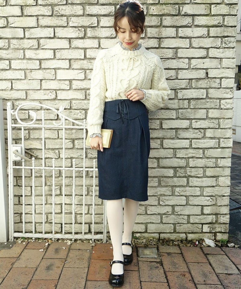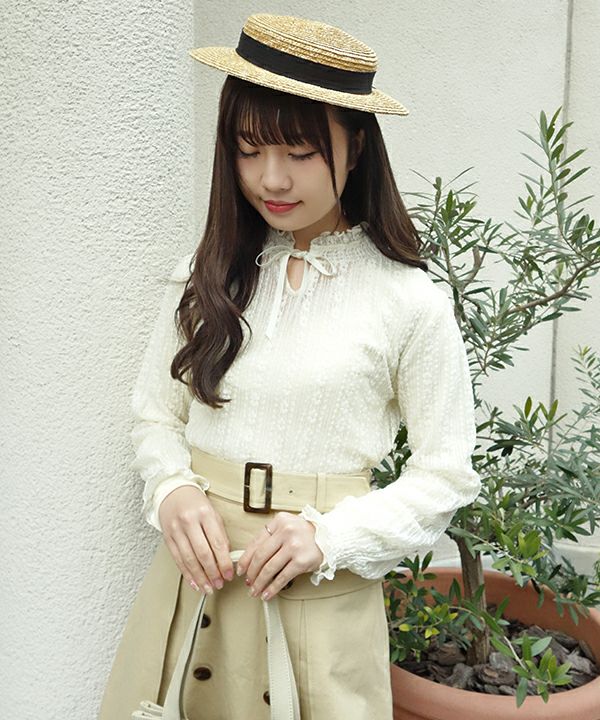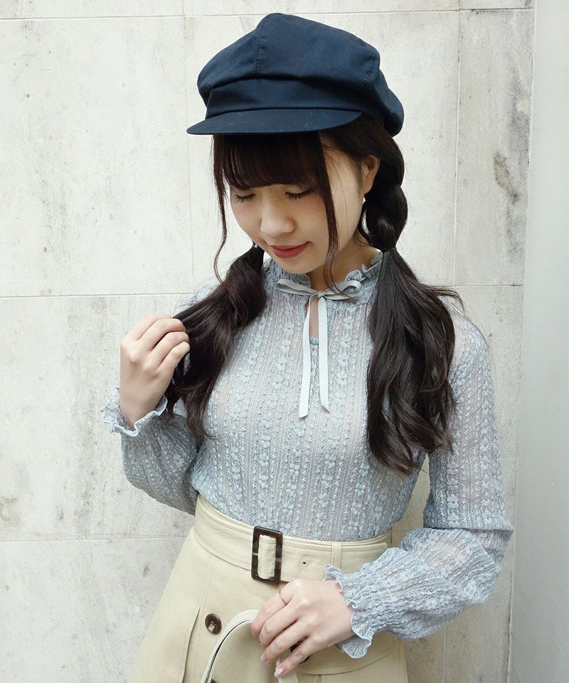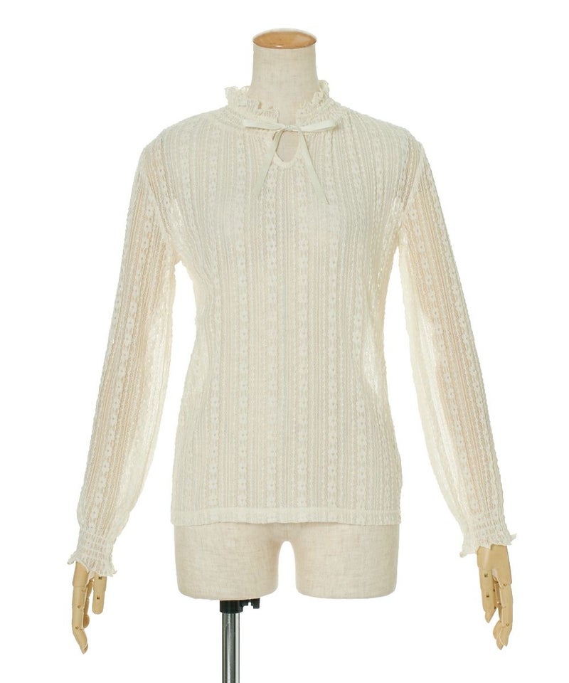 フロントリボンストライプレーストップス/F&A [29CI01j004]