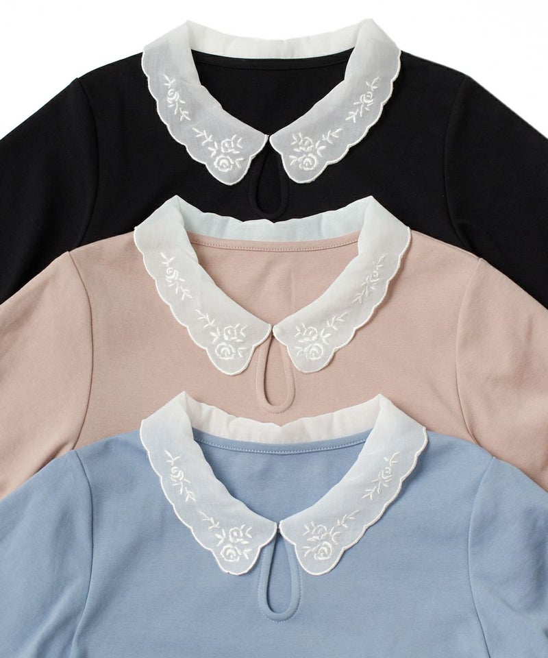 フラワー刺繍クレリックT/F&A[29CI02g008]