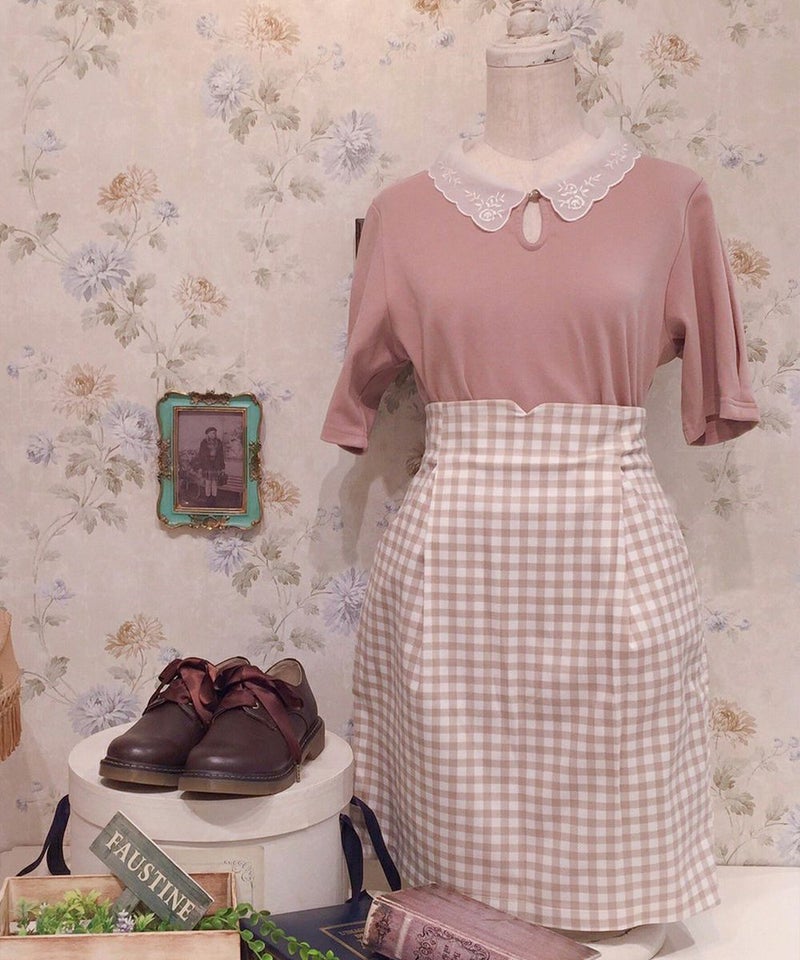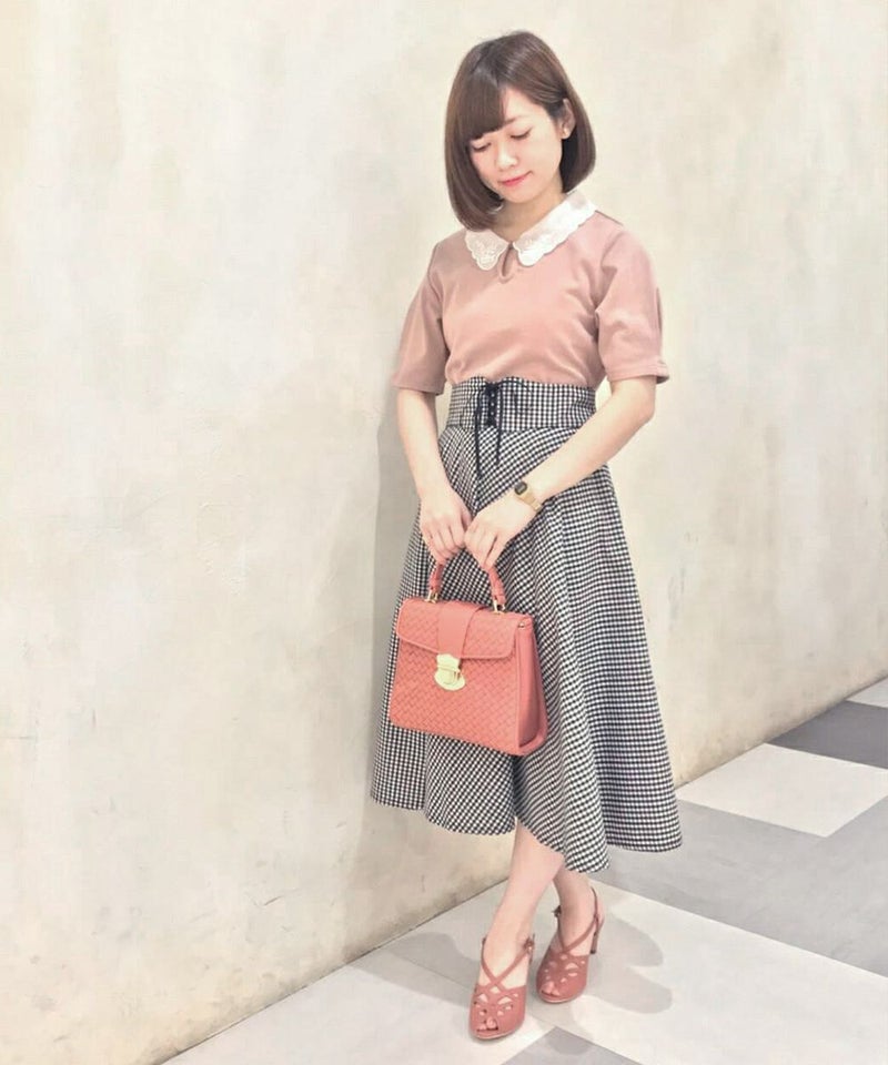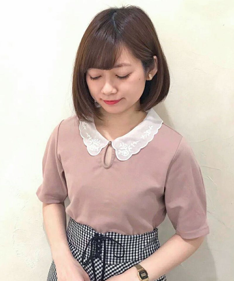 SAXを購入しました。 Tシャツだけどレース襟によって上品に着られるので、助かっています。最近は屋内で過ごすことが多いですが、蛍光灯下だと写真よりややグレーに近い色味に見えます。