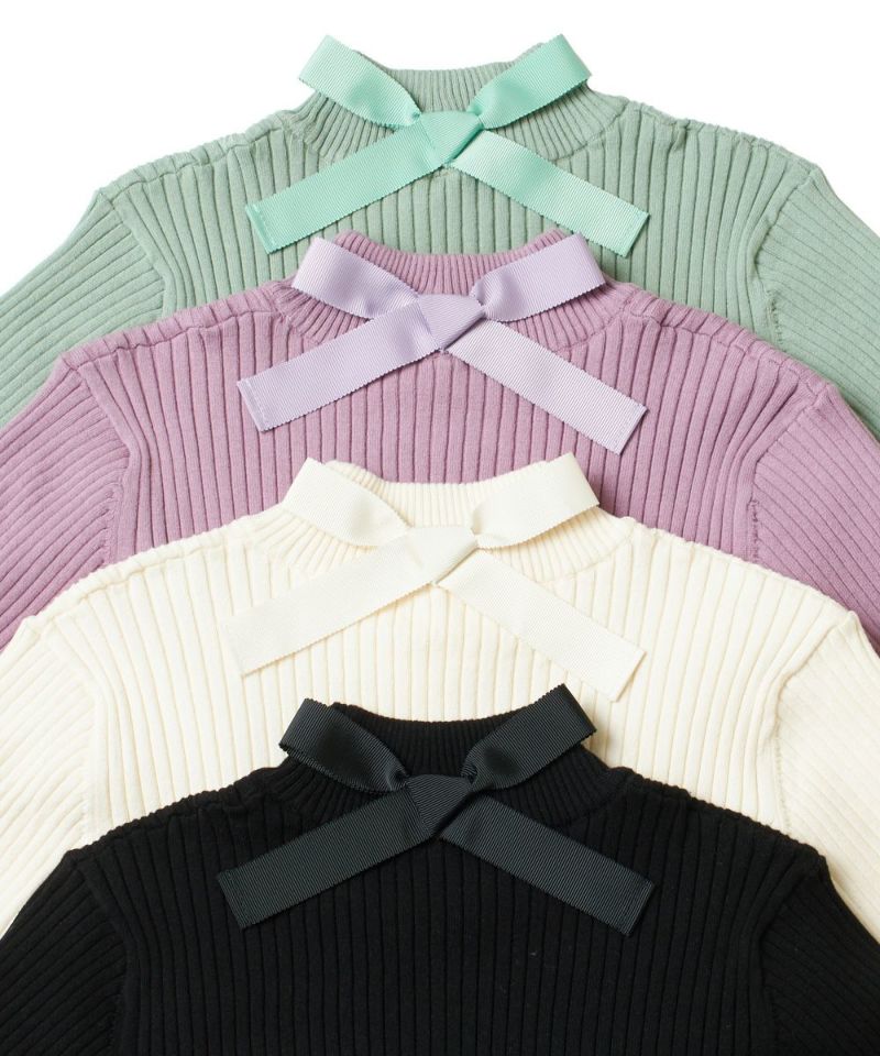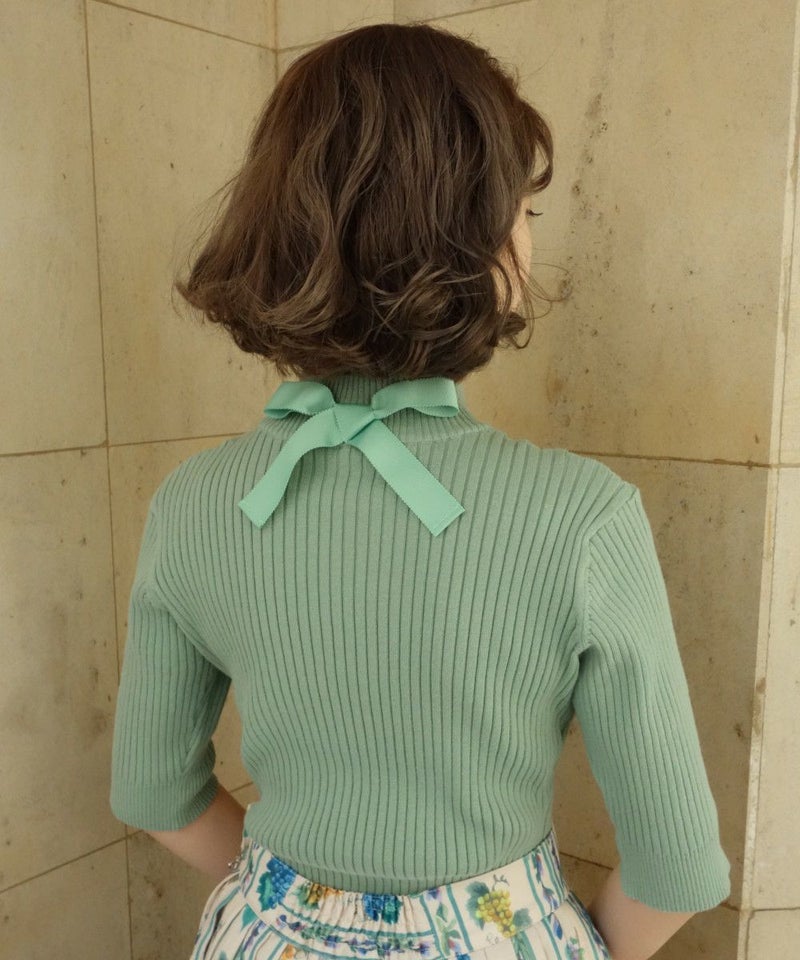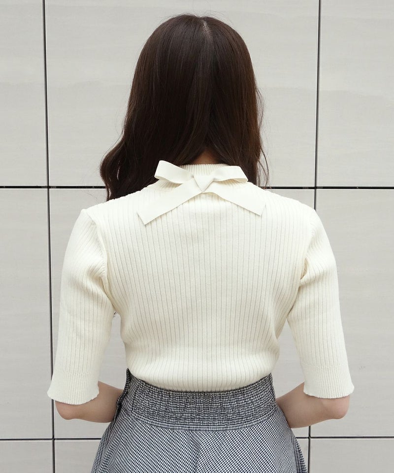 バックリボンリブニット半袖プルオーバー/F&A [29CJ03h010]