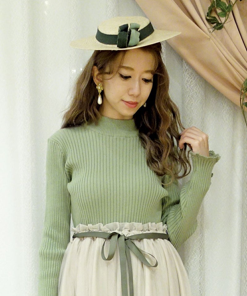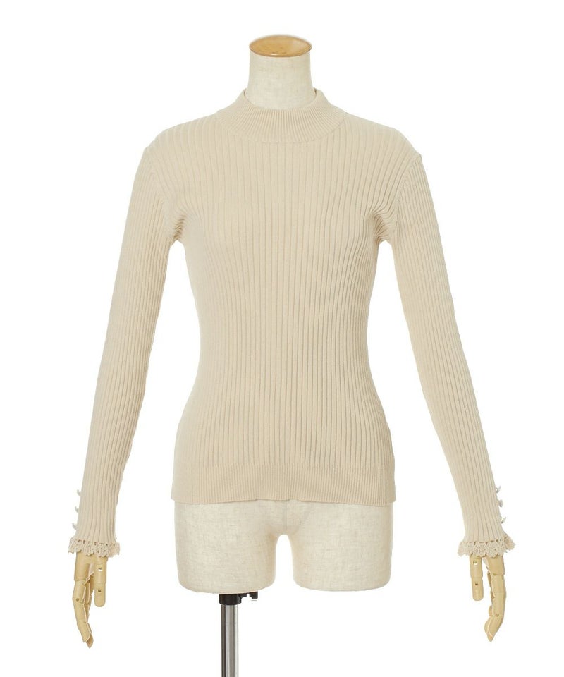 袖口飾り編みリブニットプルオーバー/F&A [29CJ03j001]