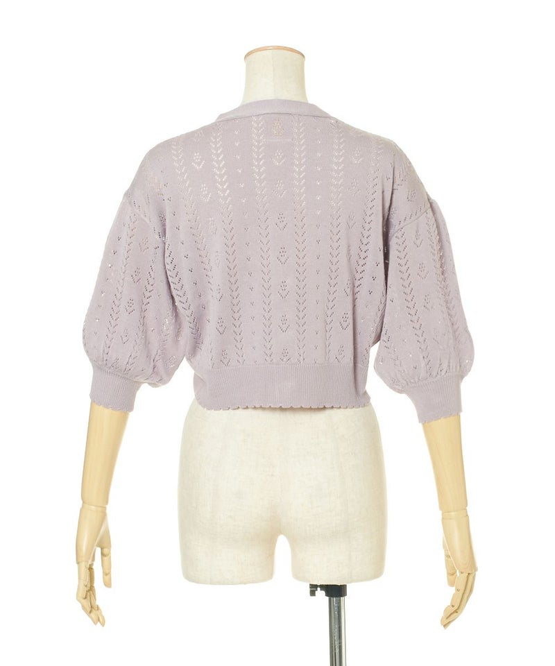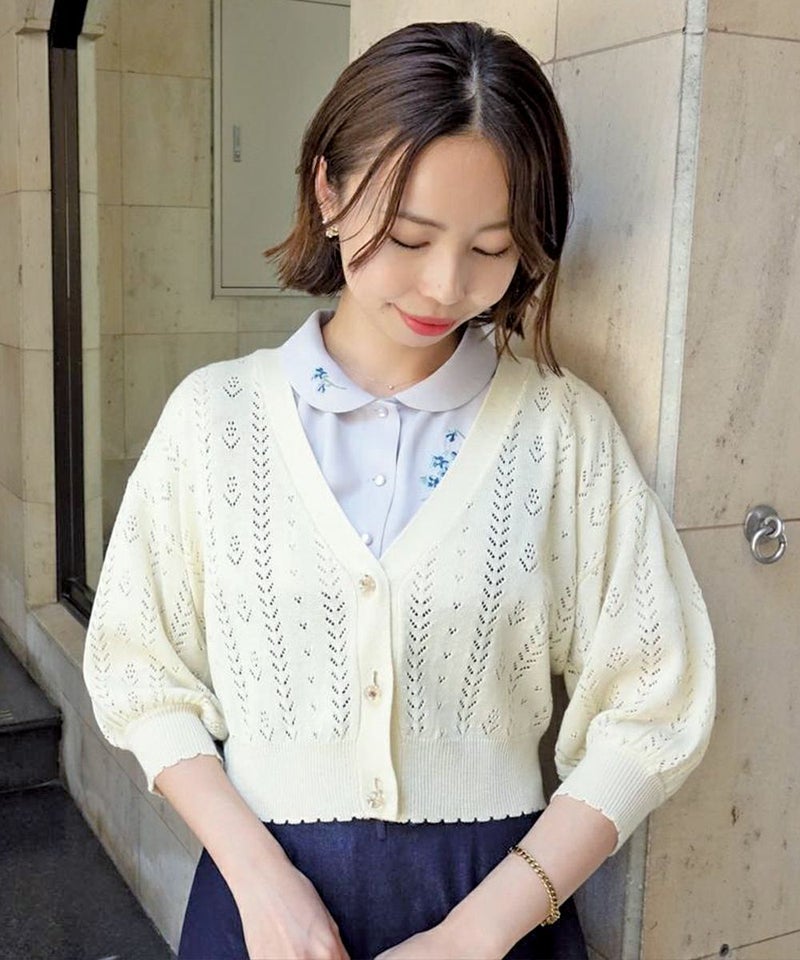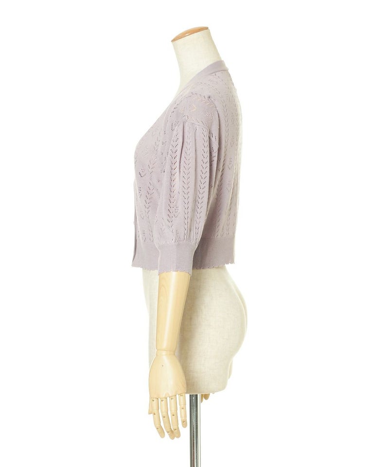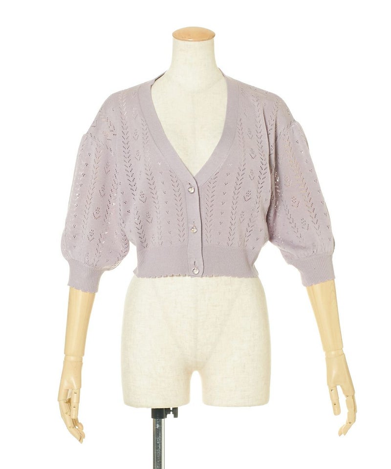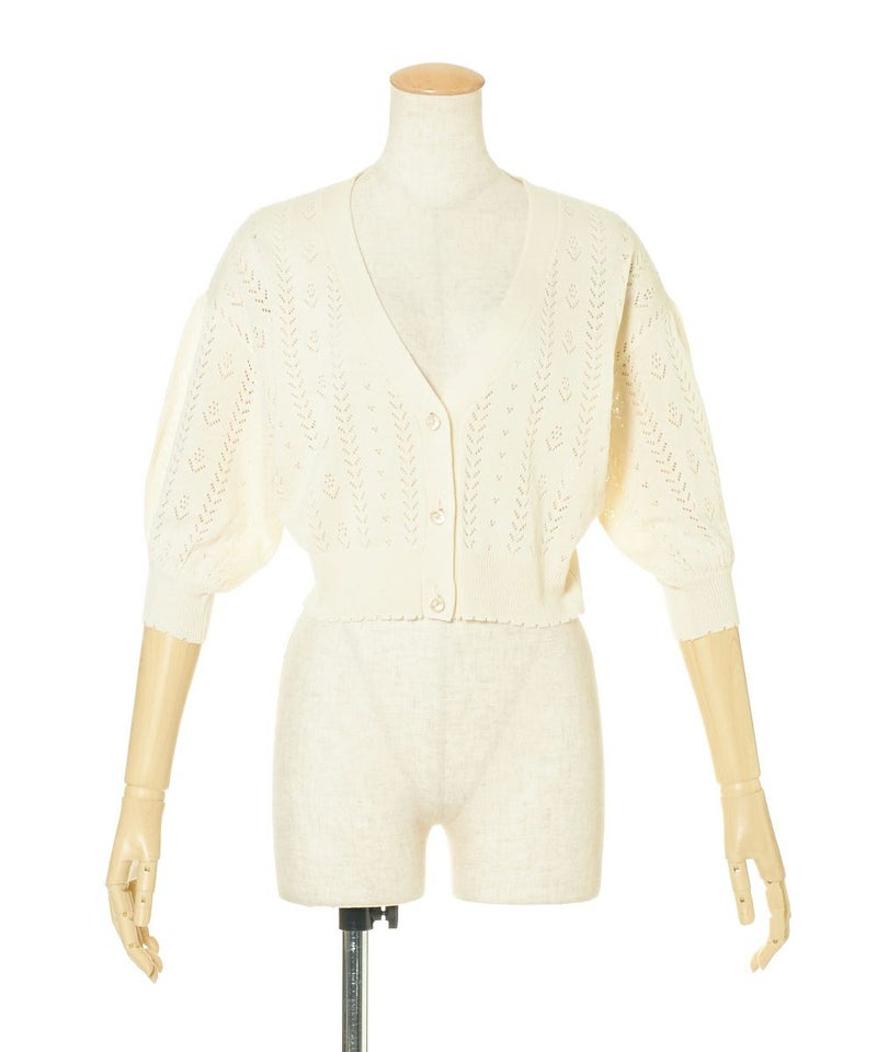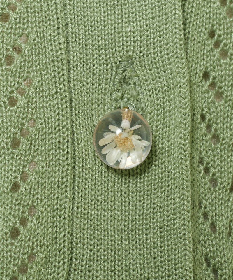 ドライフラワー釦透かし編みカーディガン/F&A[29CJ04h009]