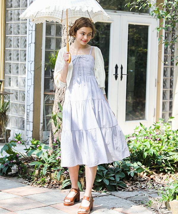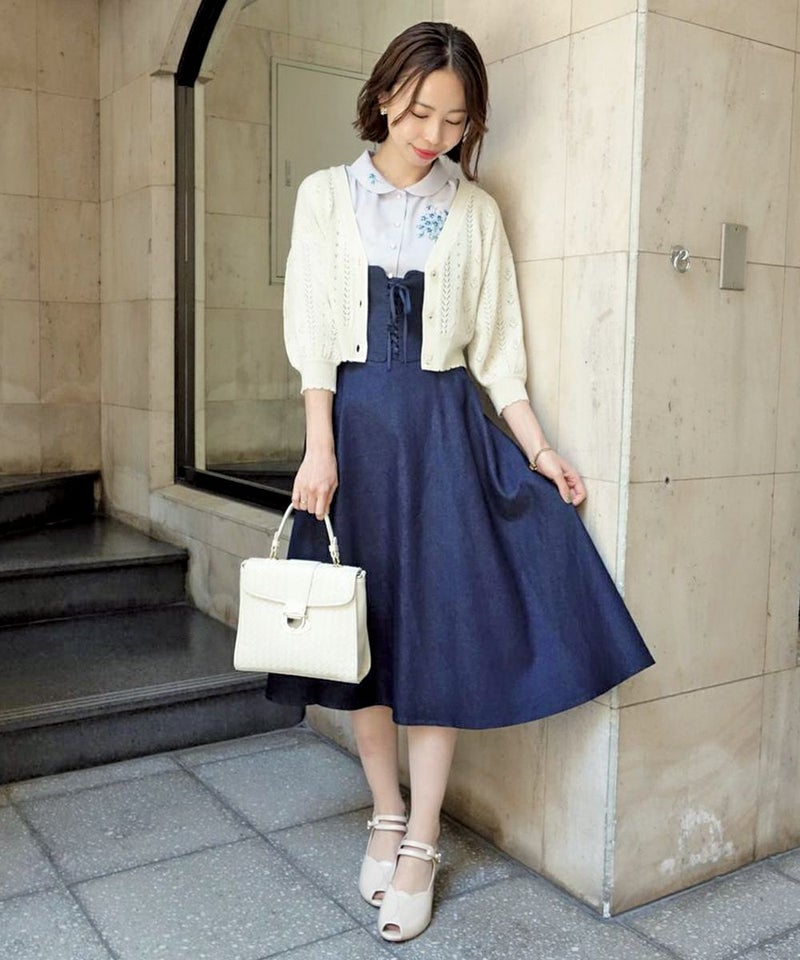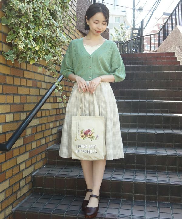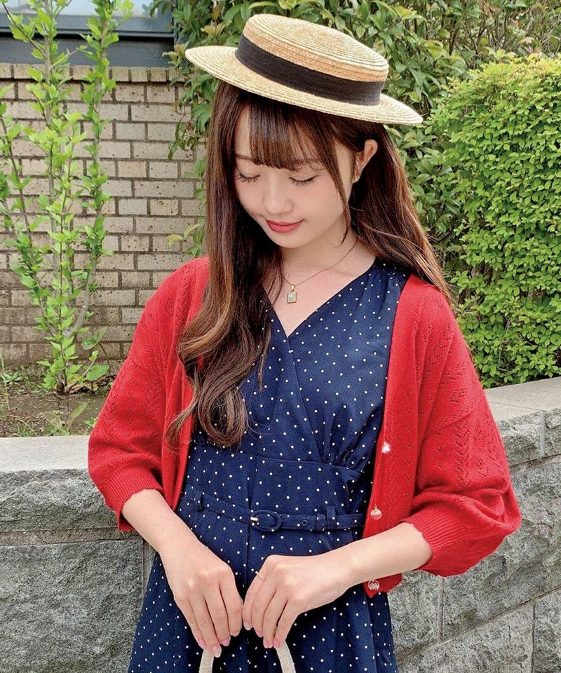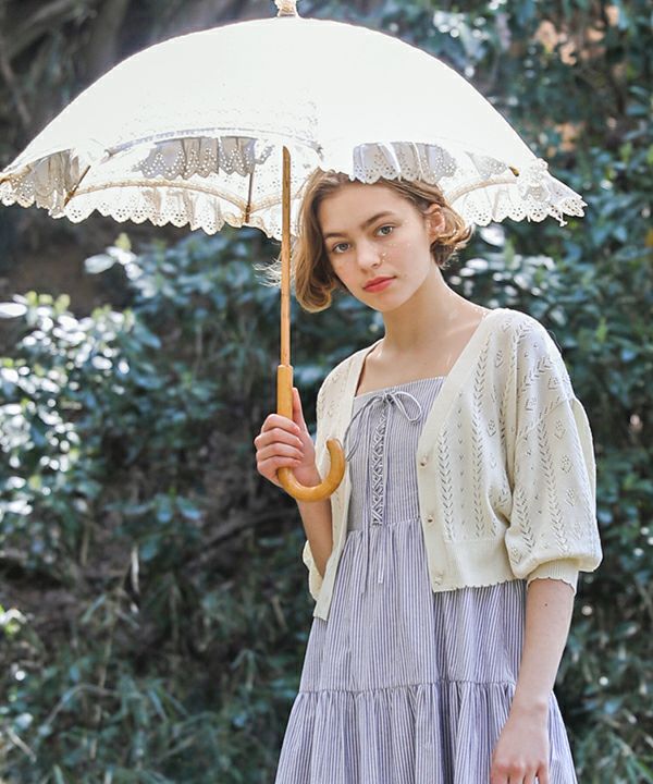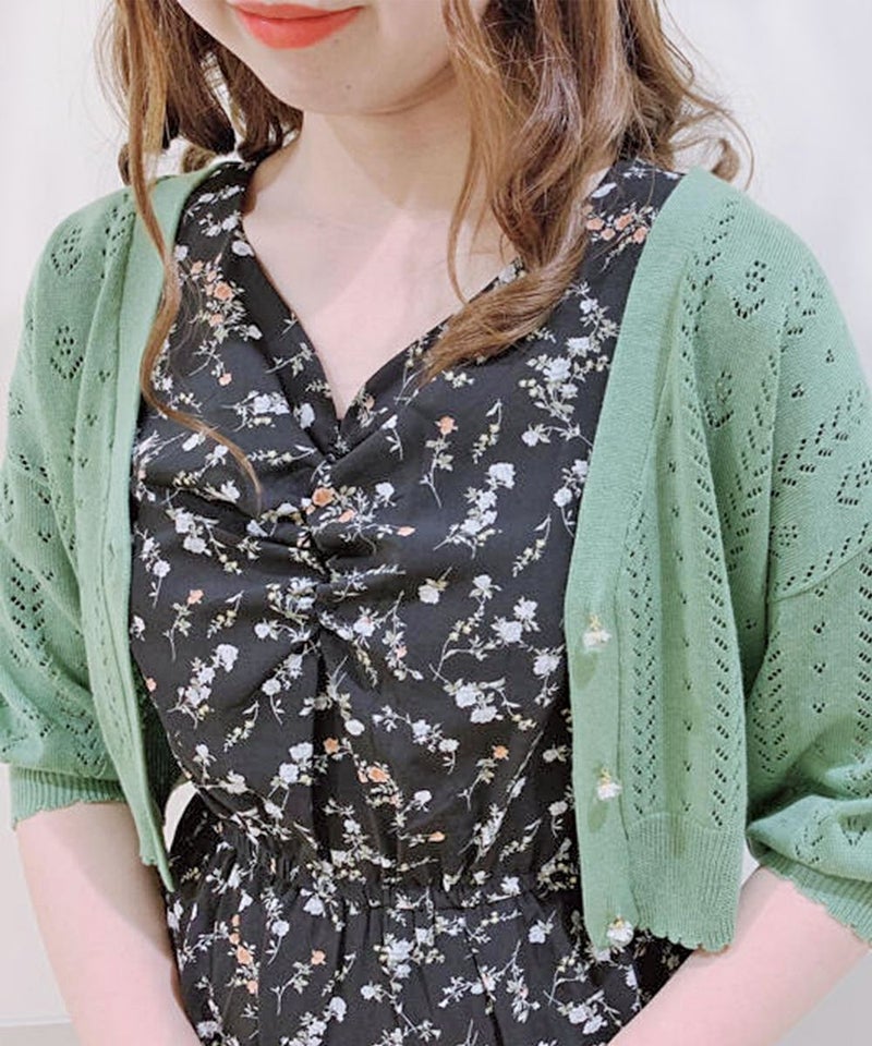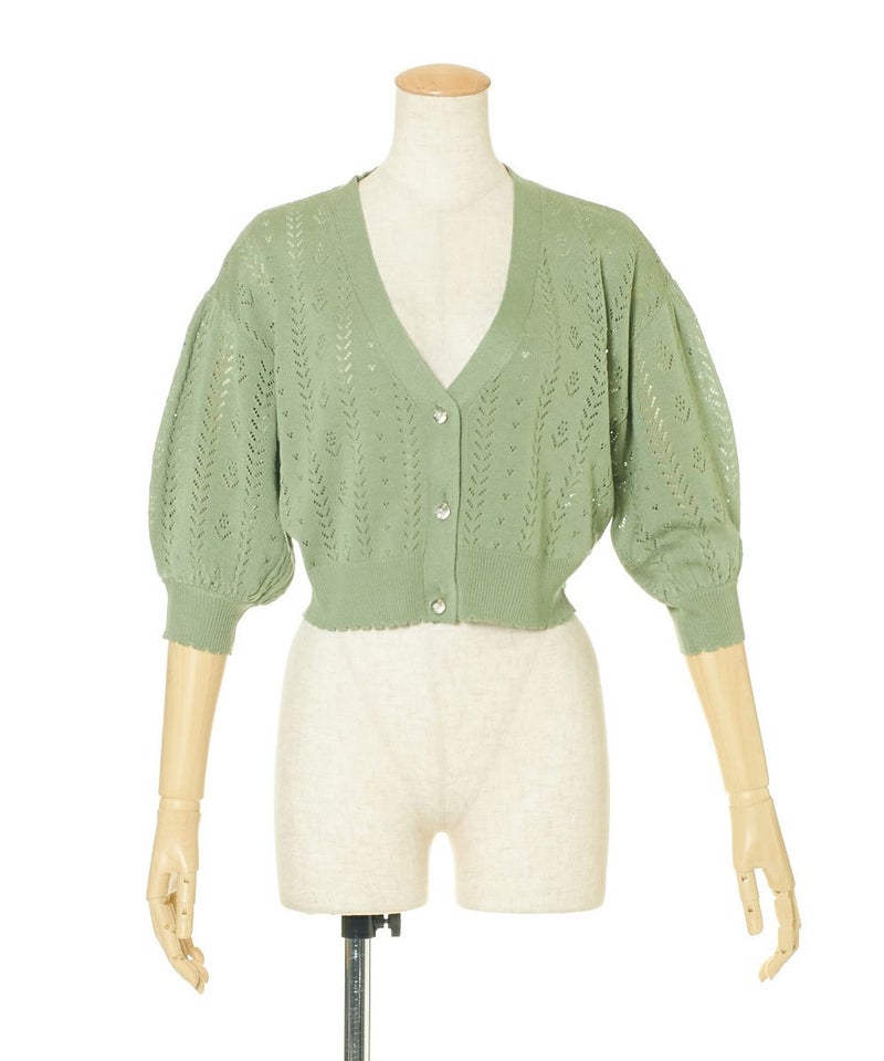 ドライフラワー釦透かし編みカーディガン/F&A[29CJ04h009]