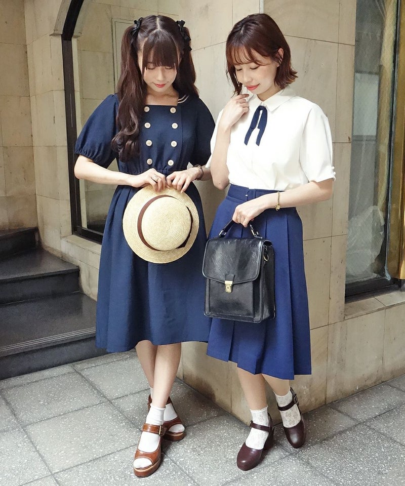 ダブル釦スクエアネックマリンワンピース/F i.n.t[30AE02g025]
