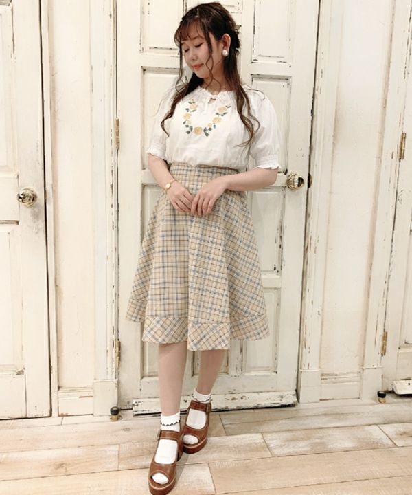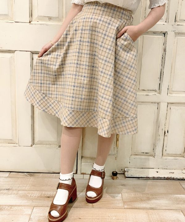 裾切替チェックフレアースカート/F i.n.t [30AG02n021]