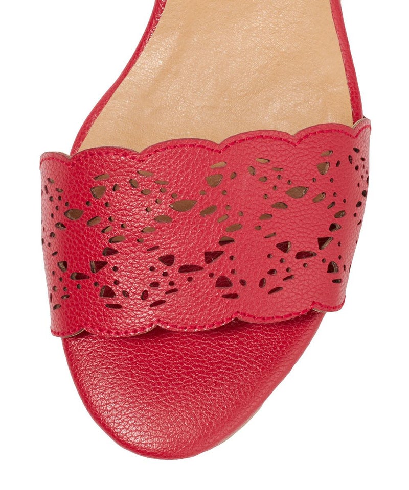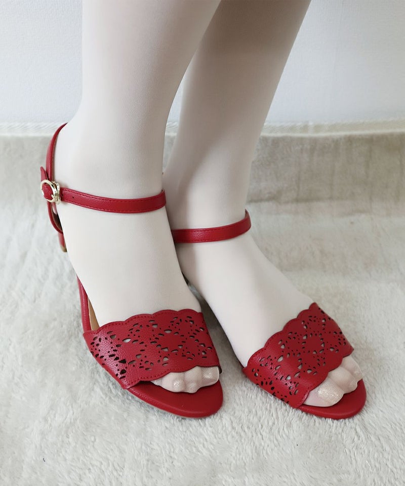 赤購入です。 ヒールも高くなくて革も柔らかいので、あちこち歩き回る人でも履きやすいと思います。 ただ、大きく前が開いているデザインなので歩き方によってはどんどん前ズレしていく人もいるかも。
