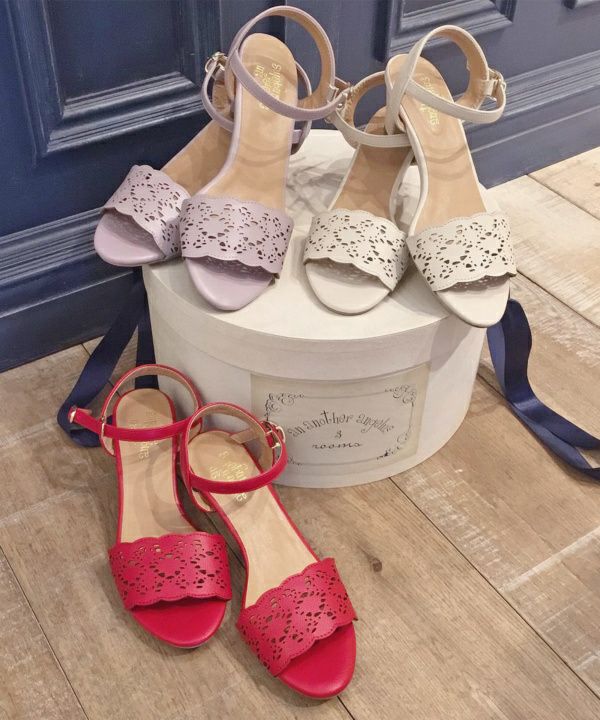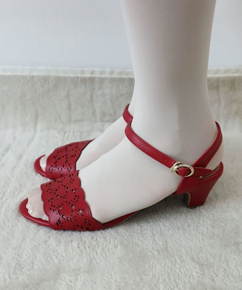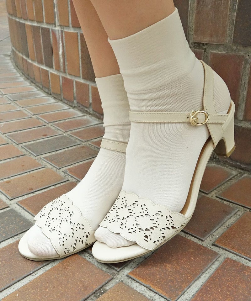トーションレースのようなカットワークが涼し気なサンダル。
