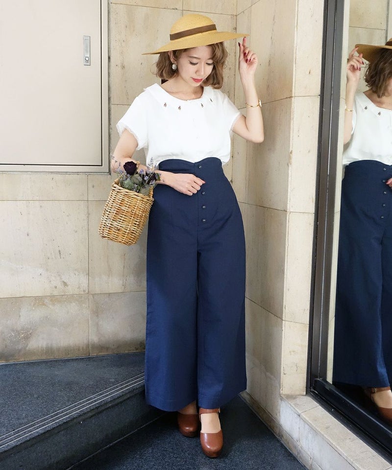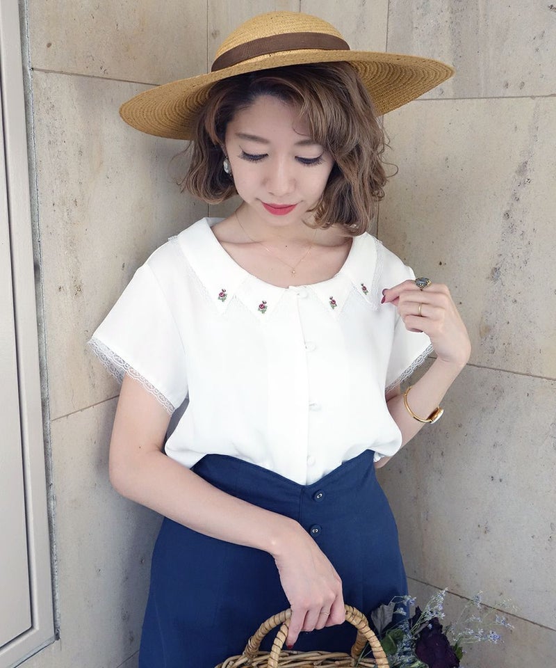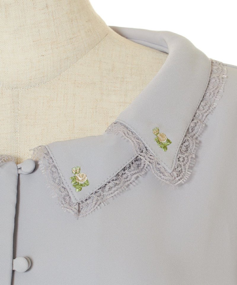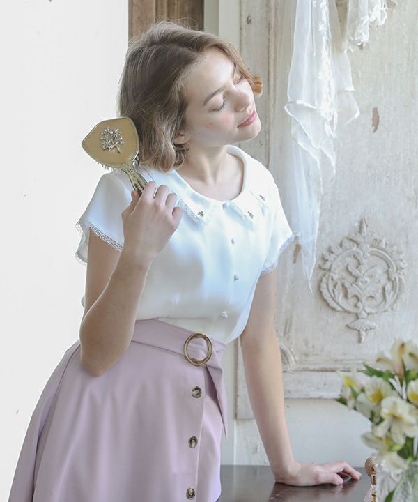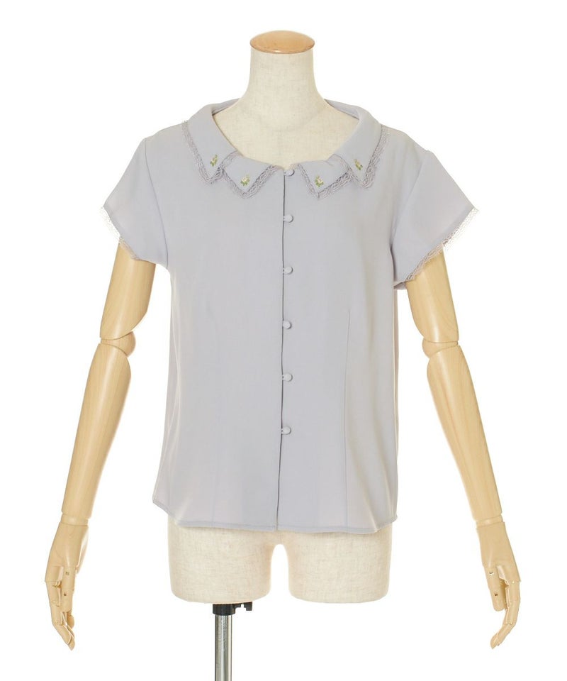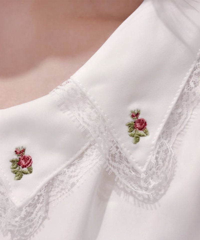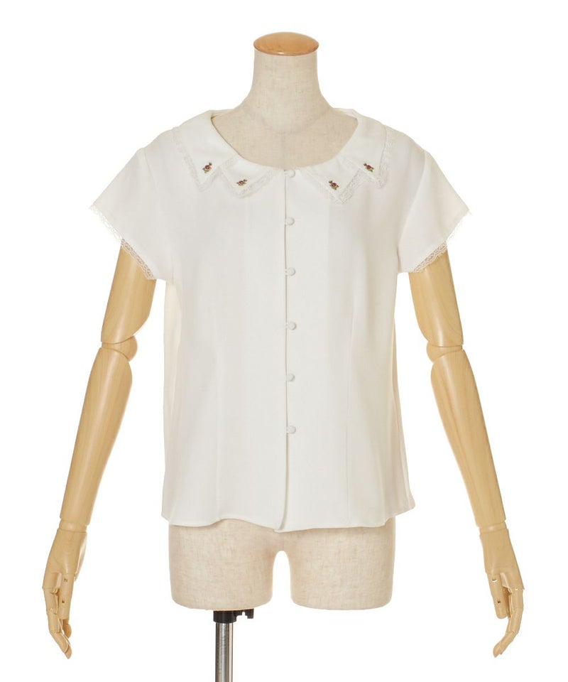 プチローズ刺繍ダブル衿ブラウス/an another angelus [30BF02g019]