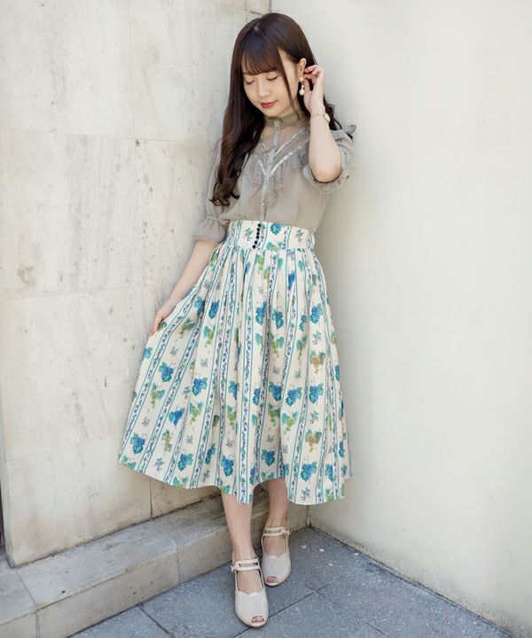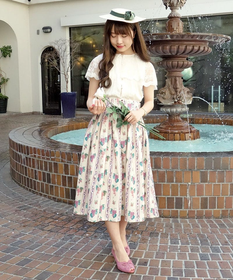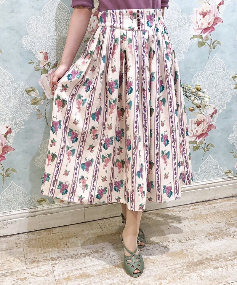 ヴィンテージフルーツストライプ柄スカート/an another angelus [30BG03p018]