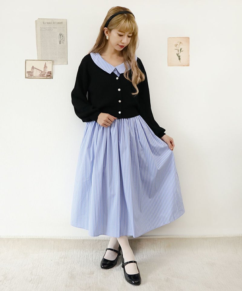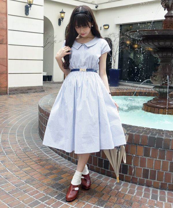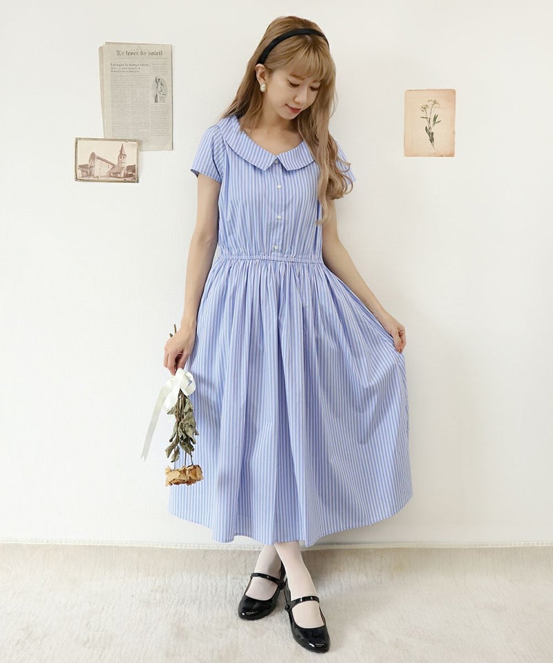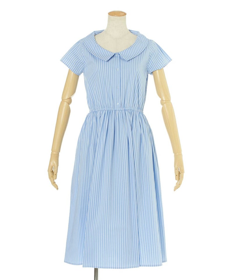 フレンチスリーブストライプシャツワンピース/F&A [30CE02g007]