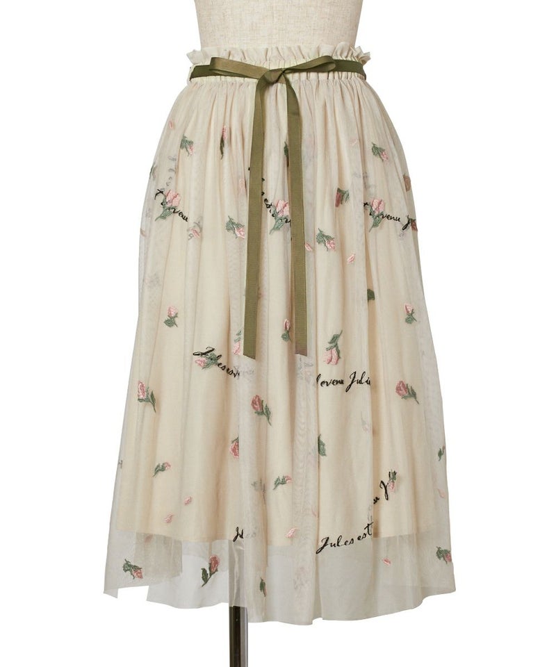 フラワーロゴ刺繍チュールスカート/an another angelus [31BG03p003]