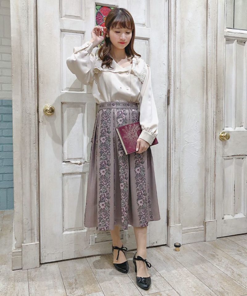 ゴブランフラワープリントタックスカート/an another angelus [32BG03p016]