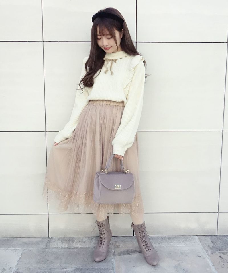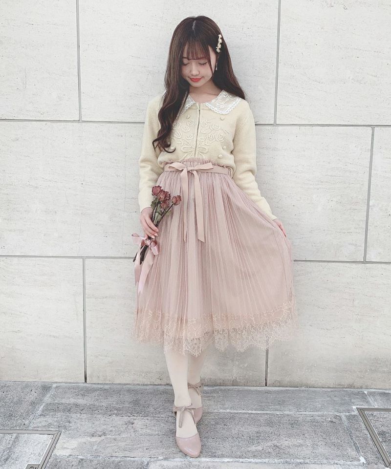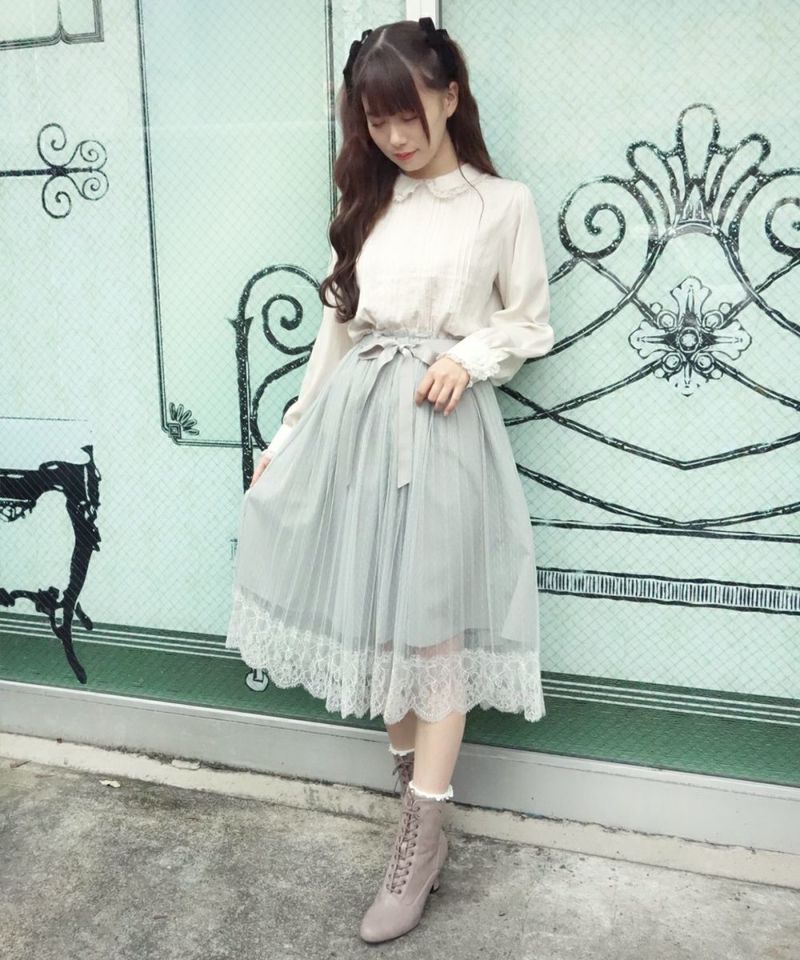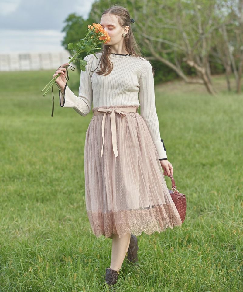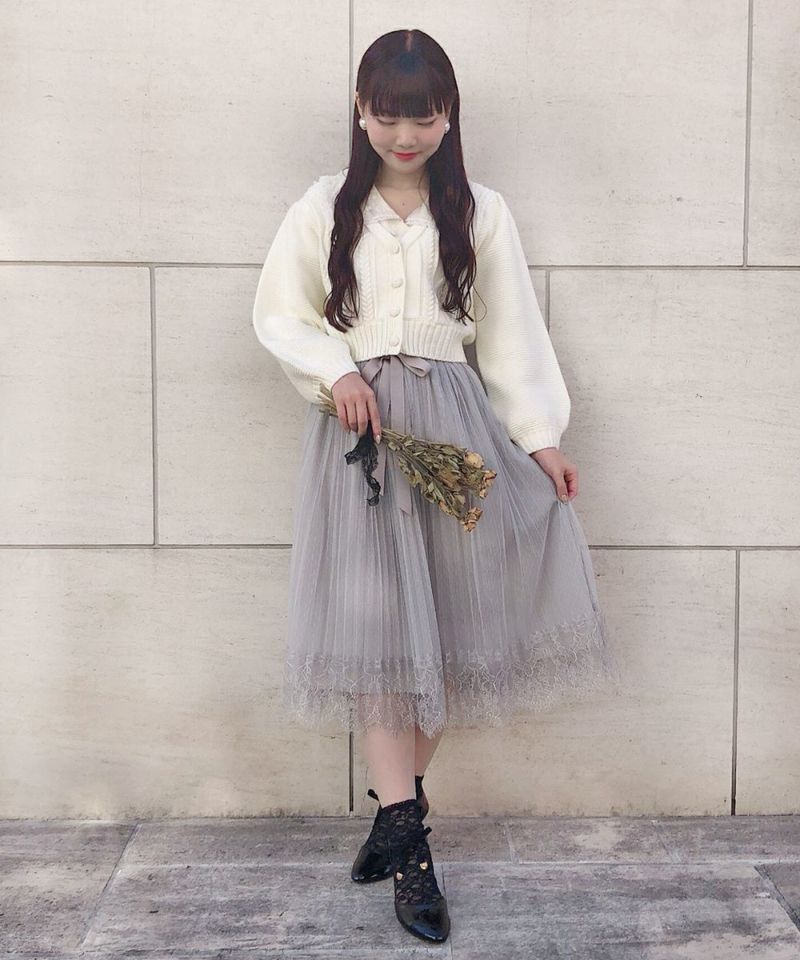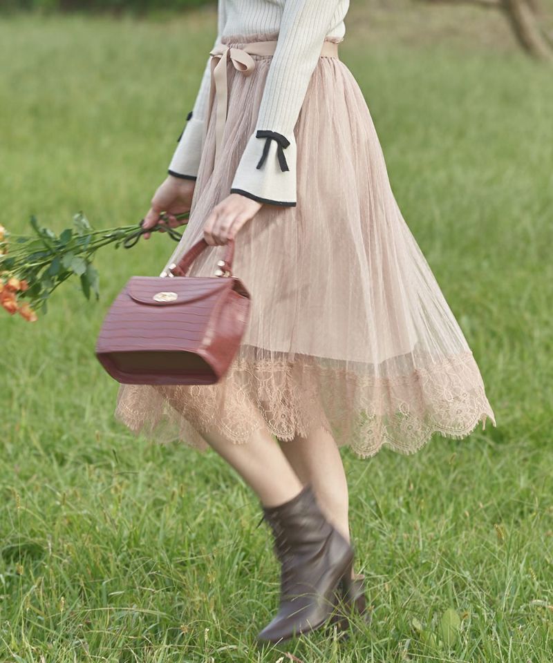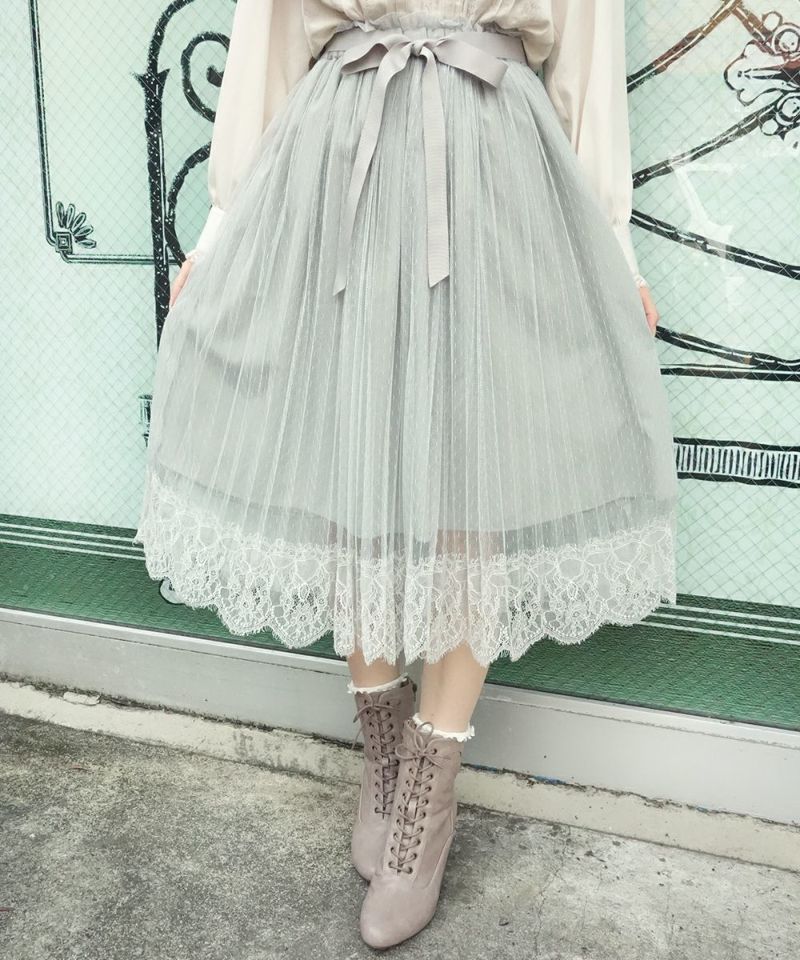 レース使いチュールプリーツスカート/an another angelus [32BG03p017]