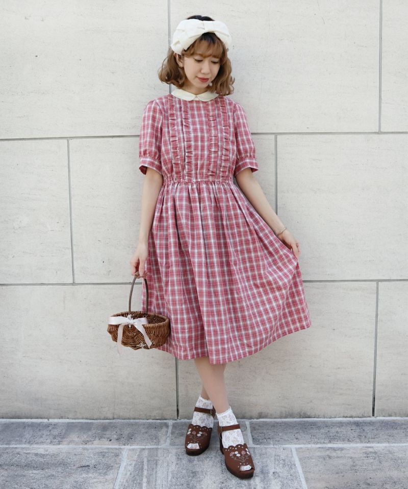 クレリック衿チェック柄ワンピース/F i.n.t [33AE02g014]