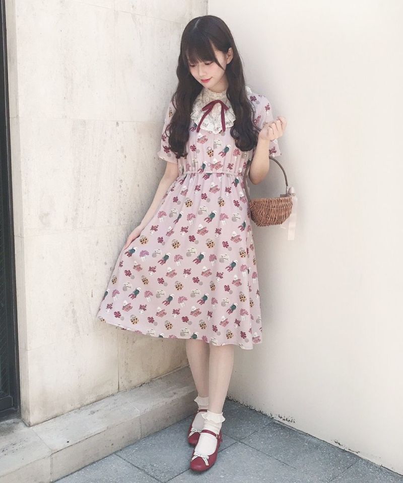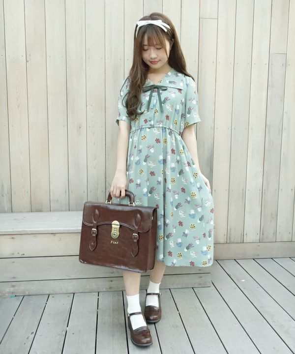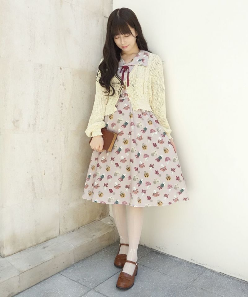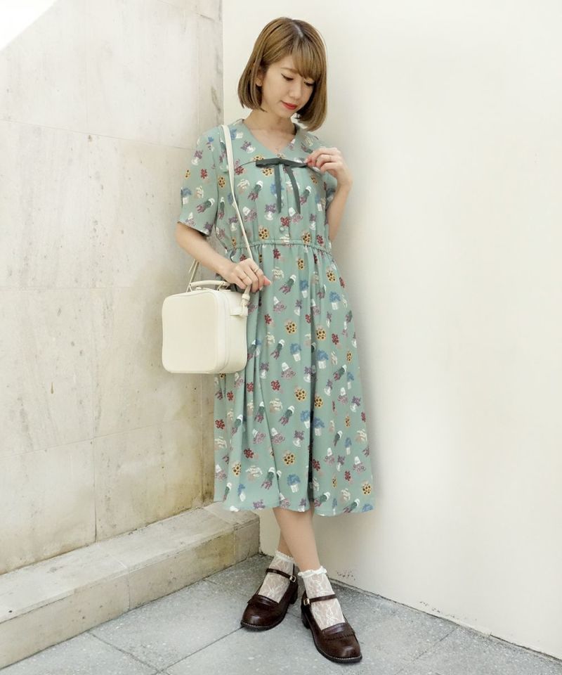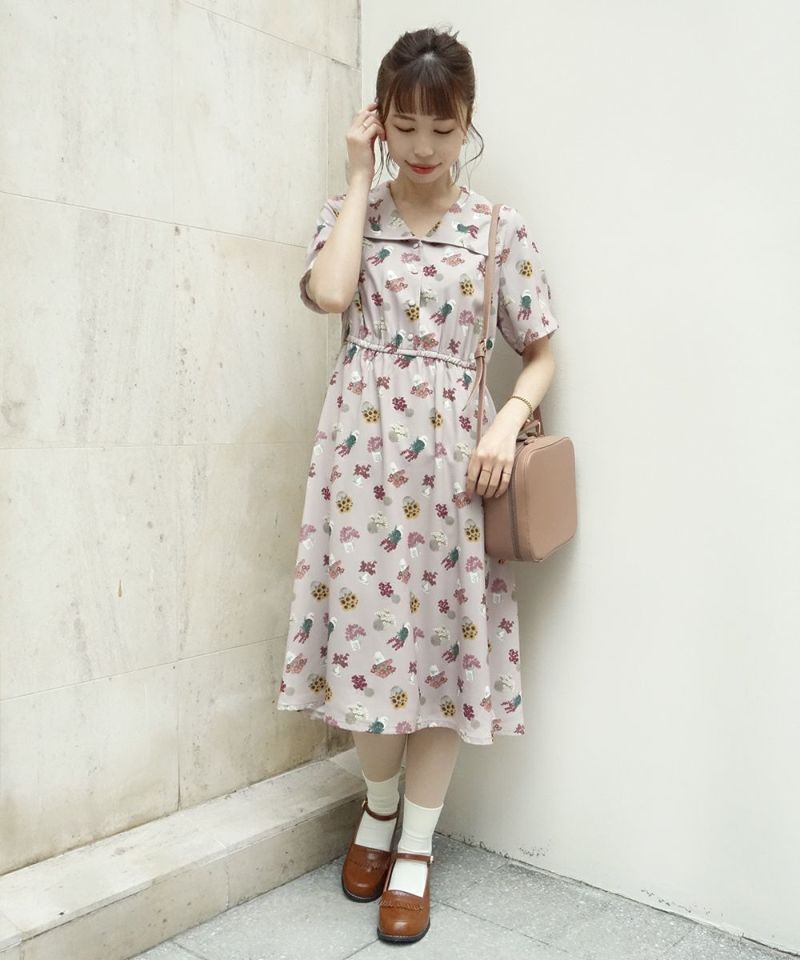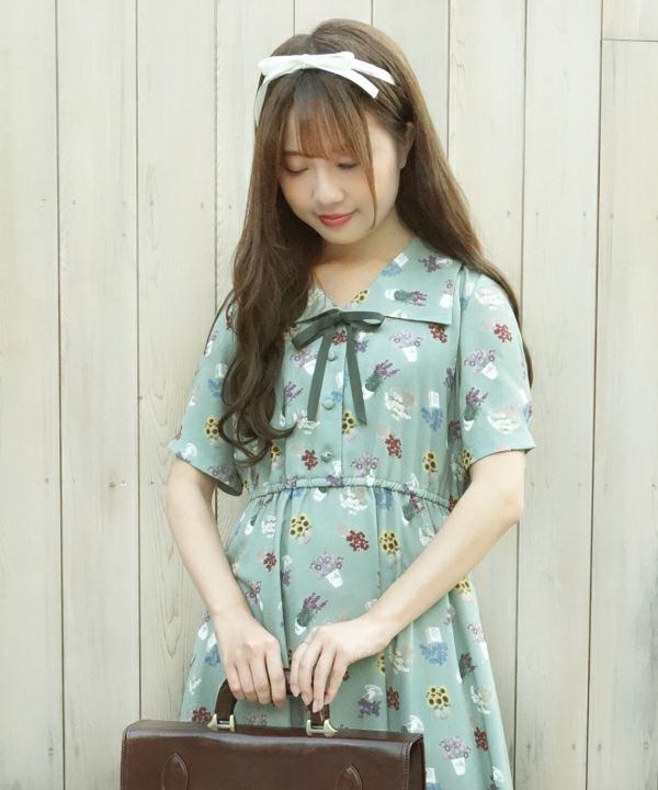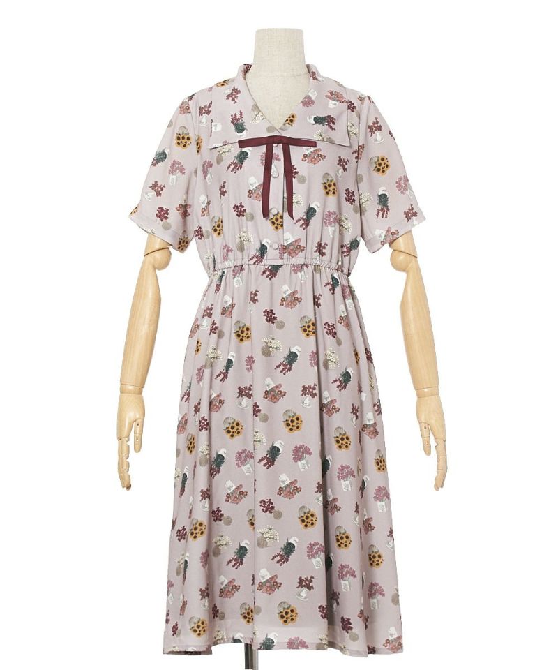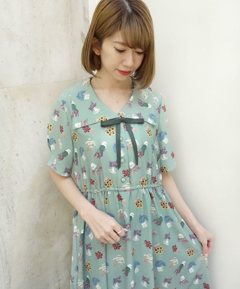 ブーケポット柄タイ付きワンピース/F i.n.t [33AE02h004]
