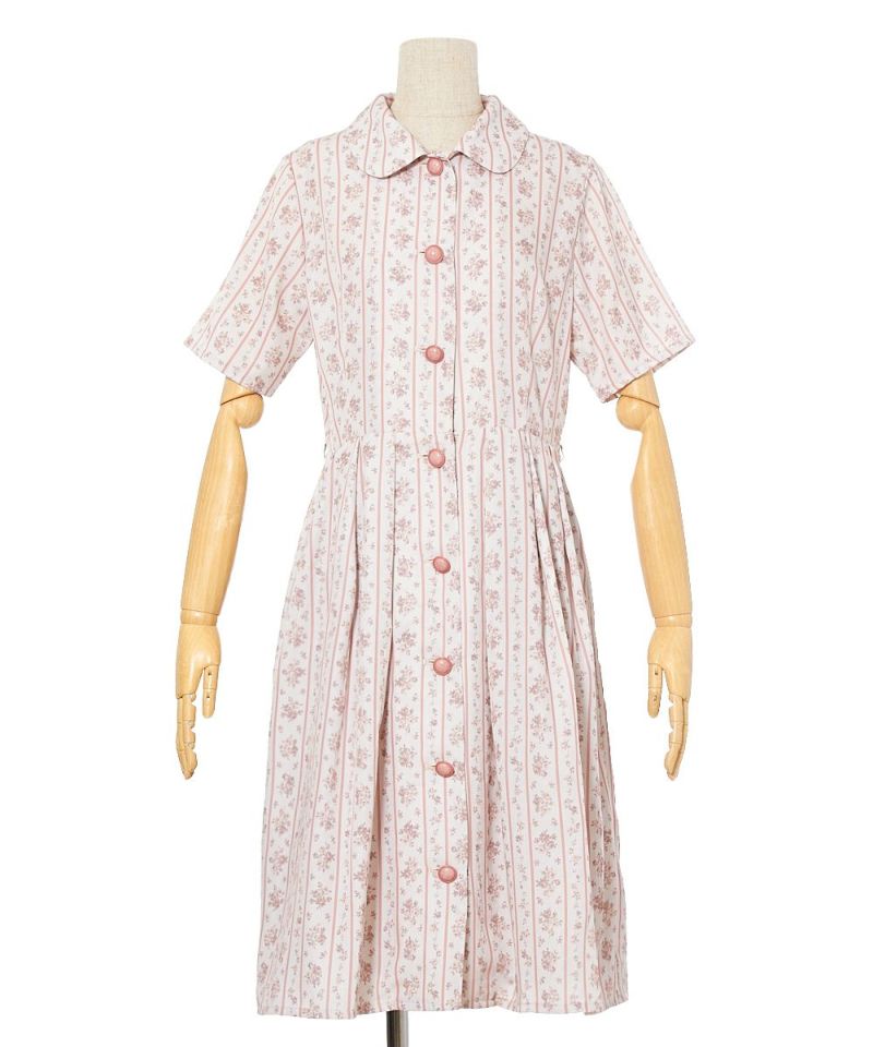 ストライプ花柄丸衿ワンピース/F i.n.t [33AE02h007]