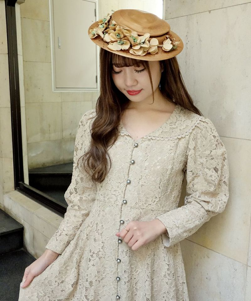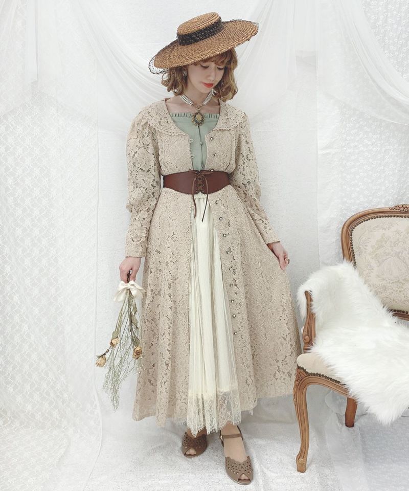ビッグカラー前あき総レースワンピース/an another angelus [33BE03j003]