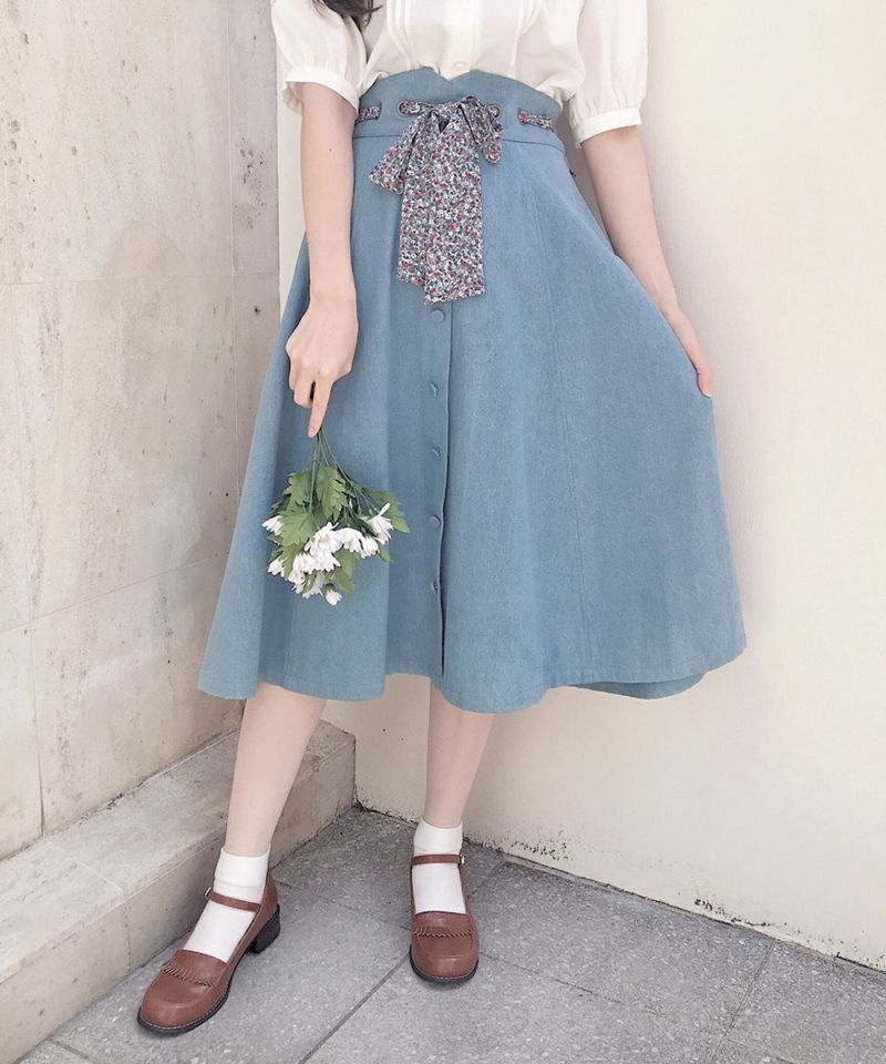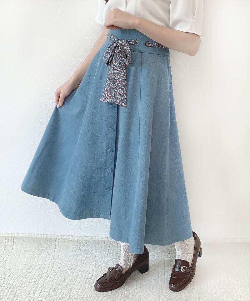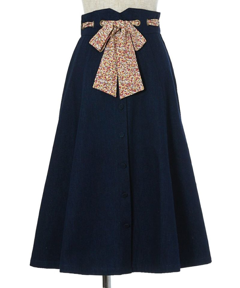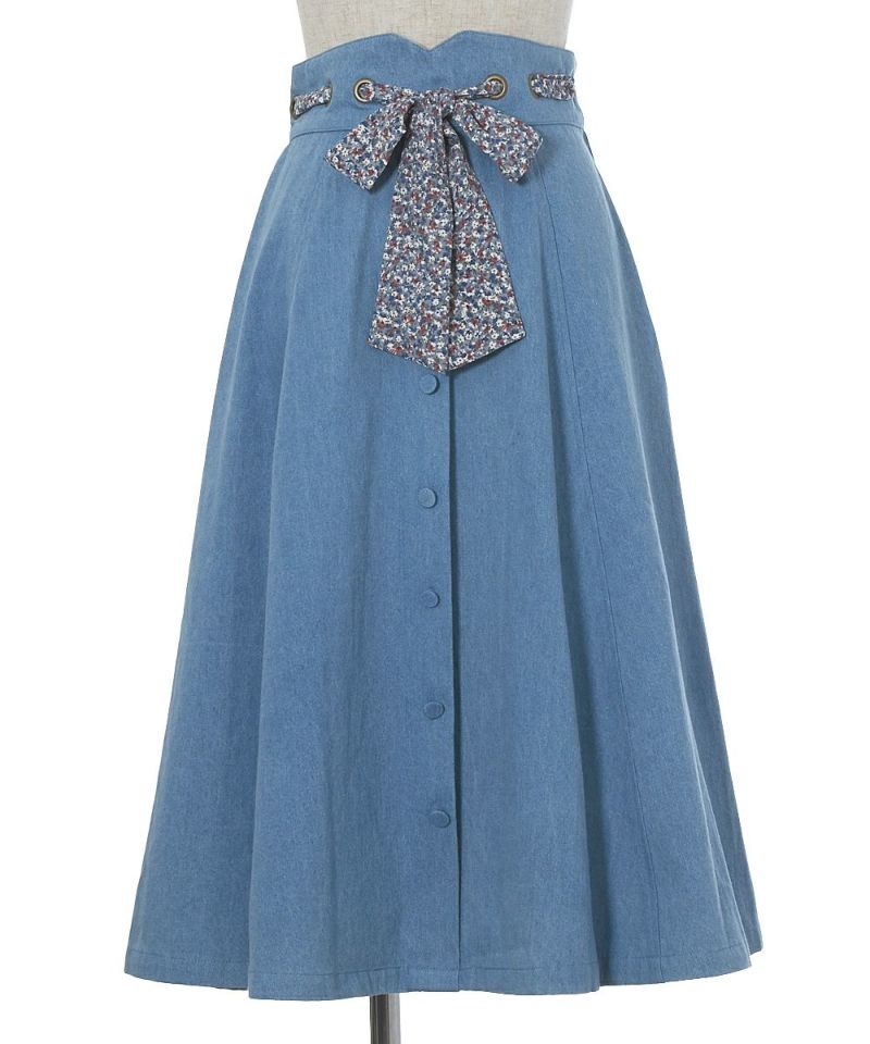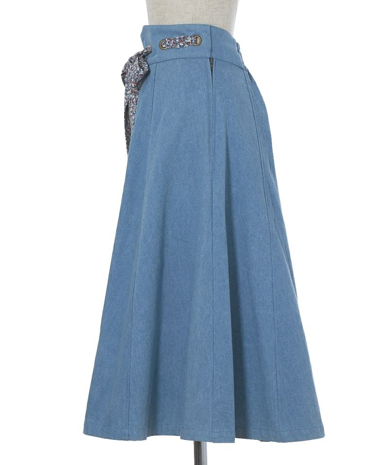 小花柄スカーフ付きデニムフレアースカート/F&A [33CG06p002]